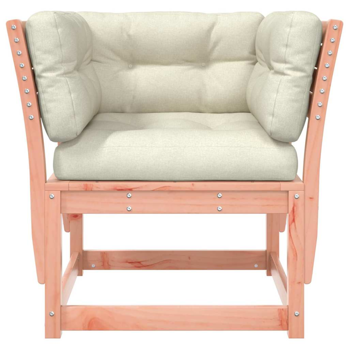 This wooden garden sofa with cushions will make a great addition to your garden, terrace, or patio for chatting with family and friends or just enjoying the weather. Solid douglas wood: Solid douglas wood is a highly durable wood that works well for outdoors. Douglas wood is also strong enough to work with minimum care, even under the influence of the weather.Comfortable seat experience: The backrest and the cushions make the garden sofa chair more comfortable to sit on.Slatted design: The slatted design of the outdoor sofa effectively prevents water from pooling, ensuring that the seat remains dry and free from potential rot.Modular design: This single sofa features a modular design, making it completely flexible and easy to move around to suit any setting. You can combine it with other modular segments available in the drop-down menu to create your own personal garden lounge set configurations! Good to know:To make sure your outdoor furniture stays beautiful, we recommend protecting it with a waterproof cover.