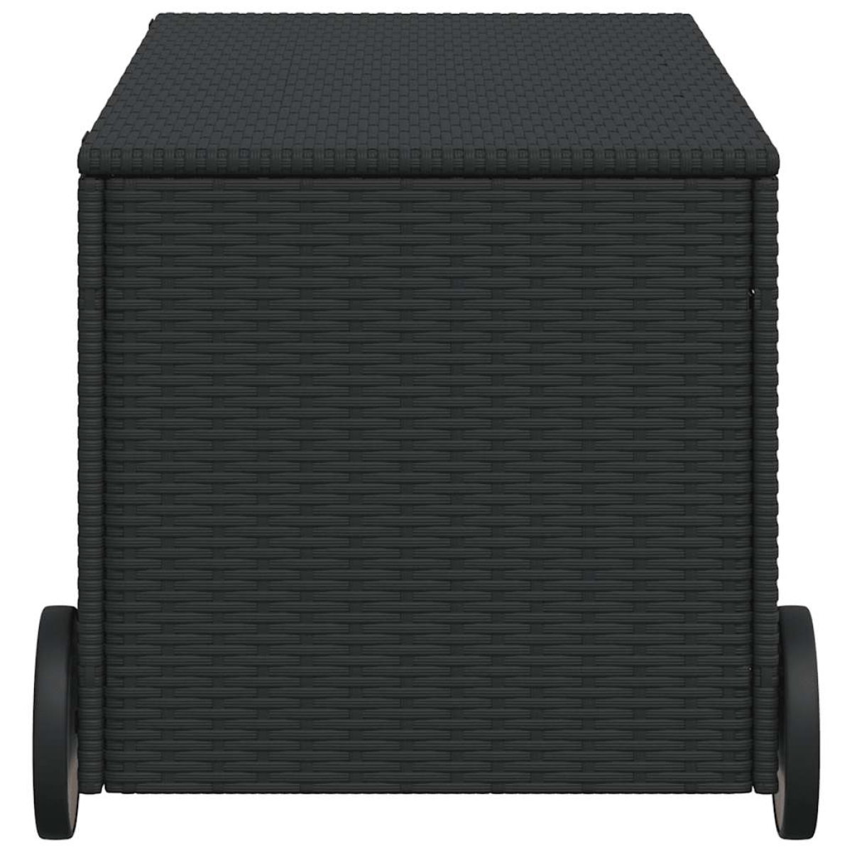 This garden storage box is ideal for storing your cushions, pillows, blankets, and other items in the garden or on the patio. Durable material: PE rattan, also known as poly rattan, is a strong, low-maintenance synthetic material that looks like natural rattan. It's lightweight, easy to clean, and commonly used for outdoor furniture due to its durability and weather-resistant properties.Storage function with water-resistant bag: The garden furniture features a water-resistant bag for storing cushions, and other items. The inner bag can be securely fastened to the outdoor furniture with hook-and-loop fasteners for added stability.Safe and easy to open and close: The gas spring makes it easy to open the lid and keeps it from slamming shut or trapping fingers.Easy to move: The outdoor storage box is designed with 2 wheels and a handle on the one side for easy transport.Robust and stable frame: The powder-coated steel frame ensures that the garden furniture is strong and stable for daily outdoor use. Good to know:To make sure your outdoor furniture stays beautiful, we recommend protecting it with a waterproof cover.
