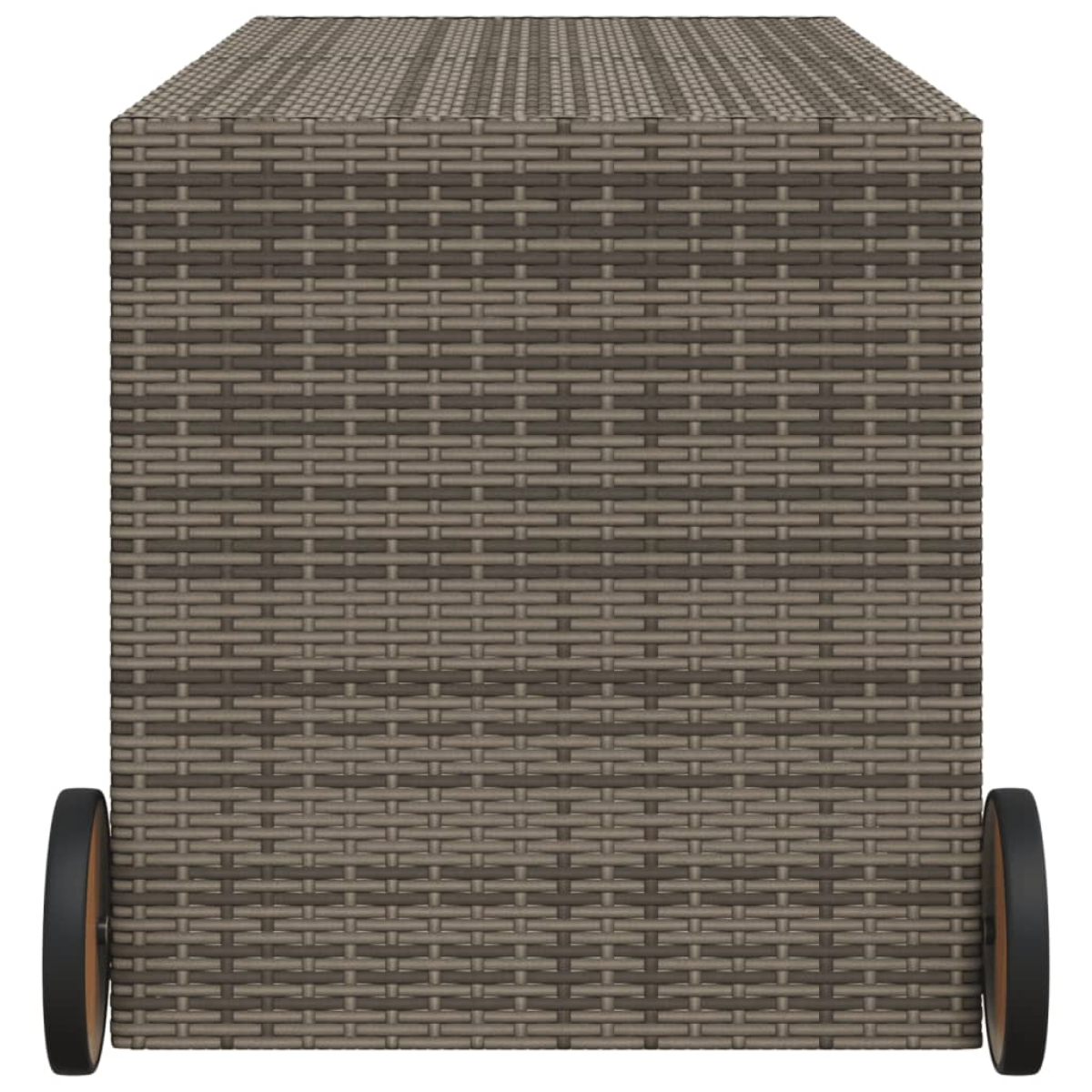 This garden storage box is ideal for storing your cushions, pillows, blankets, and other items in the garden or on the patio. Durable material: PE rattan, also known as poly rattan, is a strong, low-maintenance synthetic material that looks like natural rattan. It's lightweight, easy to clean, and commonly used for outdoor furniture due to its durability and weather-resistant properties.Storage function with water-resistant bag: The garden furniture features a water-resistant bag for storing cushions and other items. The inner bag can be securely fastened to the outdoor furniture with hook-and-loop fasteners for added stability.Safe and easy to open and close: The gas spring makes it easy to open the lid and keeps it from slamming shut or trapping fingers.Easy to move: The outdoor storage box is designed with 2 wheels and a handle on the one side for easy transport.Robust and stable frame: The powder-coated steel frame ensures that the garden furniture is strong and stable for daily outdoor use. Good to know:To make sure your outdoor furniture stays beautiful, we recommend protecting it with a waterproof cover.