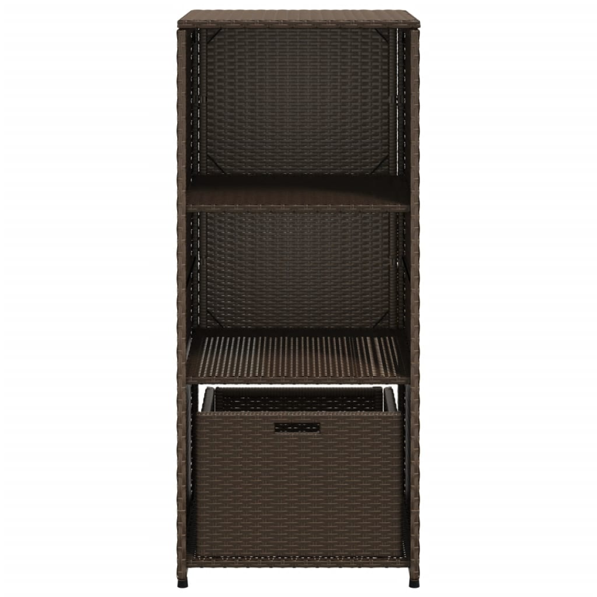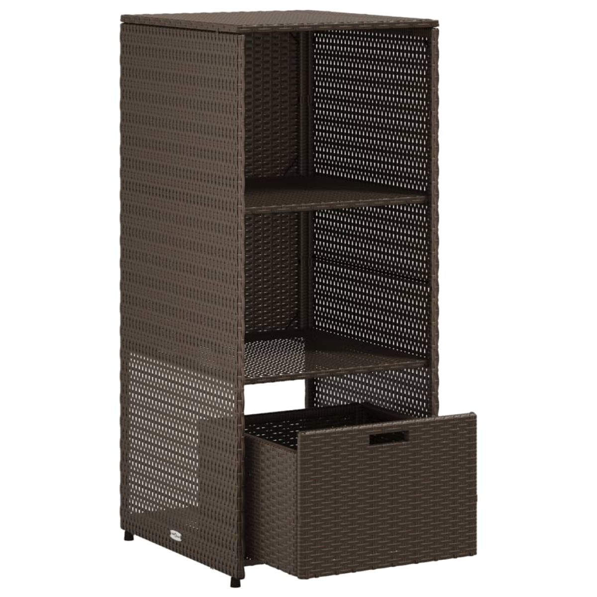 This garden storage cabinet is perfect for keeping your outdoor furniture cushions, gardening supplies, pool towels, and other items organised and easily accessible. Durable material: PE rattan, also known as poly rattan, is a strong, low-maintenance synthetic material that looks like natural rattan. It's lightweight, easy to clean, and commonly used for outdoor furniture due to its durability and weather-resistant properties.Ample storage space: This outdoor storage cabinet has 2 shelves and 1 drawer to store your garden tools, pool toys, outdoor cushions, and more.Robust and stable frame: The powder-coated steel frame ensures the garden furniture is strong and stable for daily outdoor use. WarningTo prevent it being overturned, this product must be used with the provided wall attachment device. Good to know:To make sure your outdoor furniture stays beautiful, we recommend protecting it with a waterproof cover.