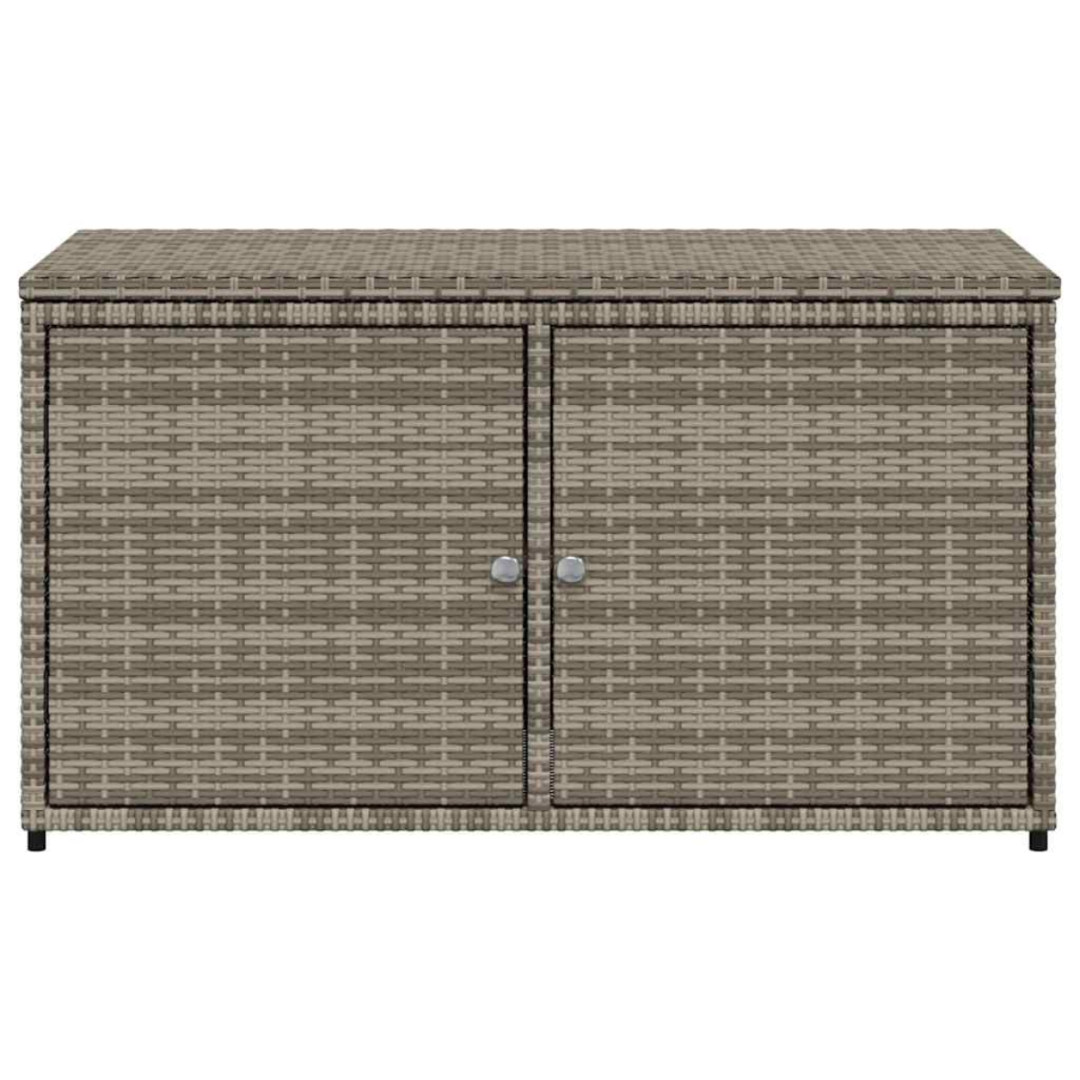 This garden storage cabinet is perfect for keeping your outdoor furniture cushions, gardening supplies, pool towels, and other items organised and easily accessible. Durable material: PE rattan, also known as poly rattan, is a strong, low-maintenance synthetic material that looks like natural rattan. It's lightweight, easy to clean, and commonly used for outdoor furniture due to its durability and weather-resistant properties.Ample storage space: This outdoor storage cabinet has a large space behind the two doors to store your garden tools, pool toys, outdoor cushions, and more.Robust and stable frame: The powder-coated steel frame ensures the garden furniture is strong and stable for daily outdoor use. Practical design: Both 2 doors are equipped with stainless steel door knobs and magnets for easy opening and closing. The top lid helps for easy storage and easy access to your items. WarningTo prevent it being overturned, this product must be used with the provided wall attachment device. Good to know:To make sure your outdoor furniture stays beautiful, we recommend protecting it with a waterproof cover.