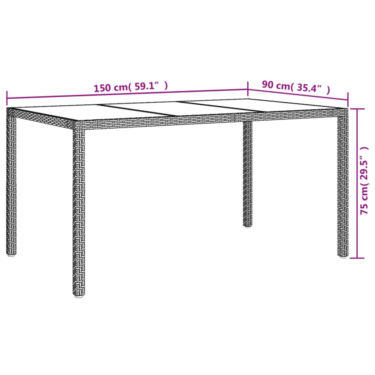 Combining both style and function, this poly rattan garden table will surely be the centerpiece of your garden, patio or any other living space. Featuring a powder-coated steel frame wrapped with poly rattan, the outdoor table is sturdy and stable. In addition, the tabletop is made of tempered glass, making it easy to clean. Thanks to the lightweight construction, the garden table is easy to move. Note: In order to extend the life of your outdoor furniture, we recommend you to clean it regularly and do not leave it outdoors without protection unnecessarily.Clean: Use a mild soap solutionStoring: If possible, store in a cool, dry place indoors. If the product is stored outdoors, protect it with a waterproof cover. Wipe and dry the excess water or snow from flat surfaces after a rain or snowfall. Allow sufficient air circulation to avoid moisture-related damage.