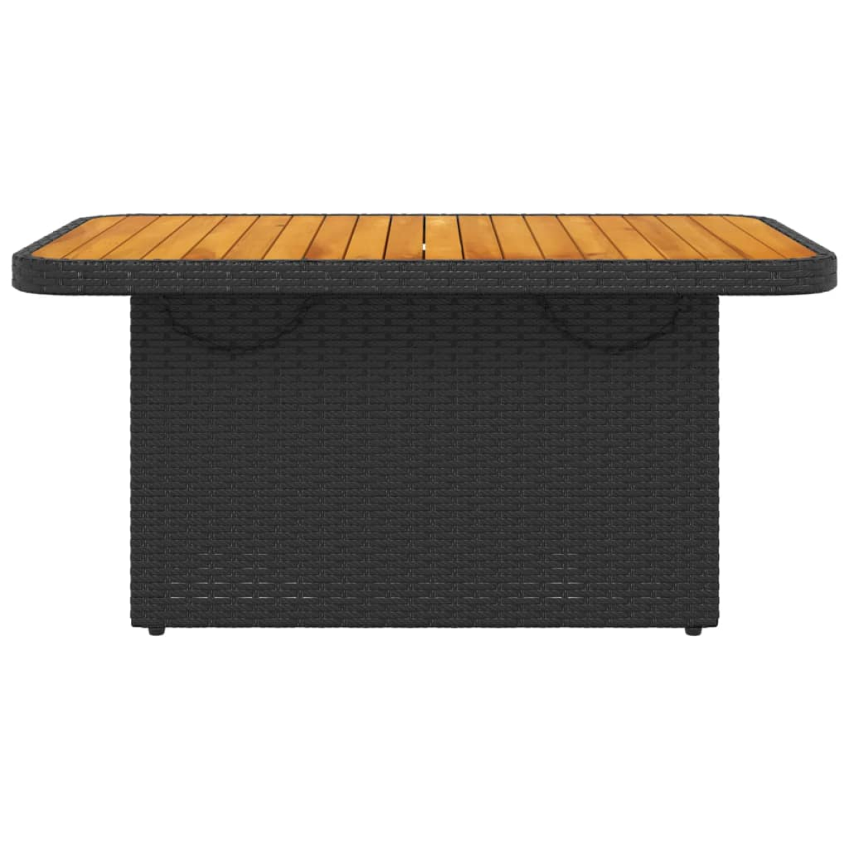 Gather around this versatile garden table to enjoy a cup of coffee or have a chat with your family and friends in the garden, backyard, or on the patio! Durable material: PE rattan, also known as poly rattan, is a strong, low-maintenance synthetic material that looks like natural rattan. It's lightweight, easy to clean, and commonly used for outdoor furniture due to its durability and weather-resistant properties. Adjustable tabletop: The tabletop can be lifted to make the table higher, which transforms the outdoor table from a coffee table to a dining table. It's perfect for having guests over or eating meals outside. Stable and easy-to-clean tabletop: This garden table has an acacia wood top that is sturdy, durable, and easy to clean with a damp cloth. Robust and stable frame: The powder-coated steel frame ensures that the garden furniture is strong and stable for daily outdoor use. Good to know: To make sure your outdoor furniture stays beautiful, we recommend protecting it with a waterproof cover.