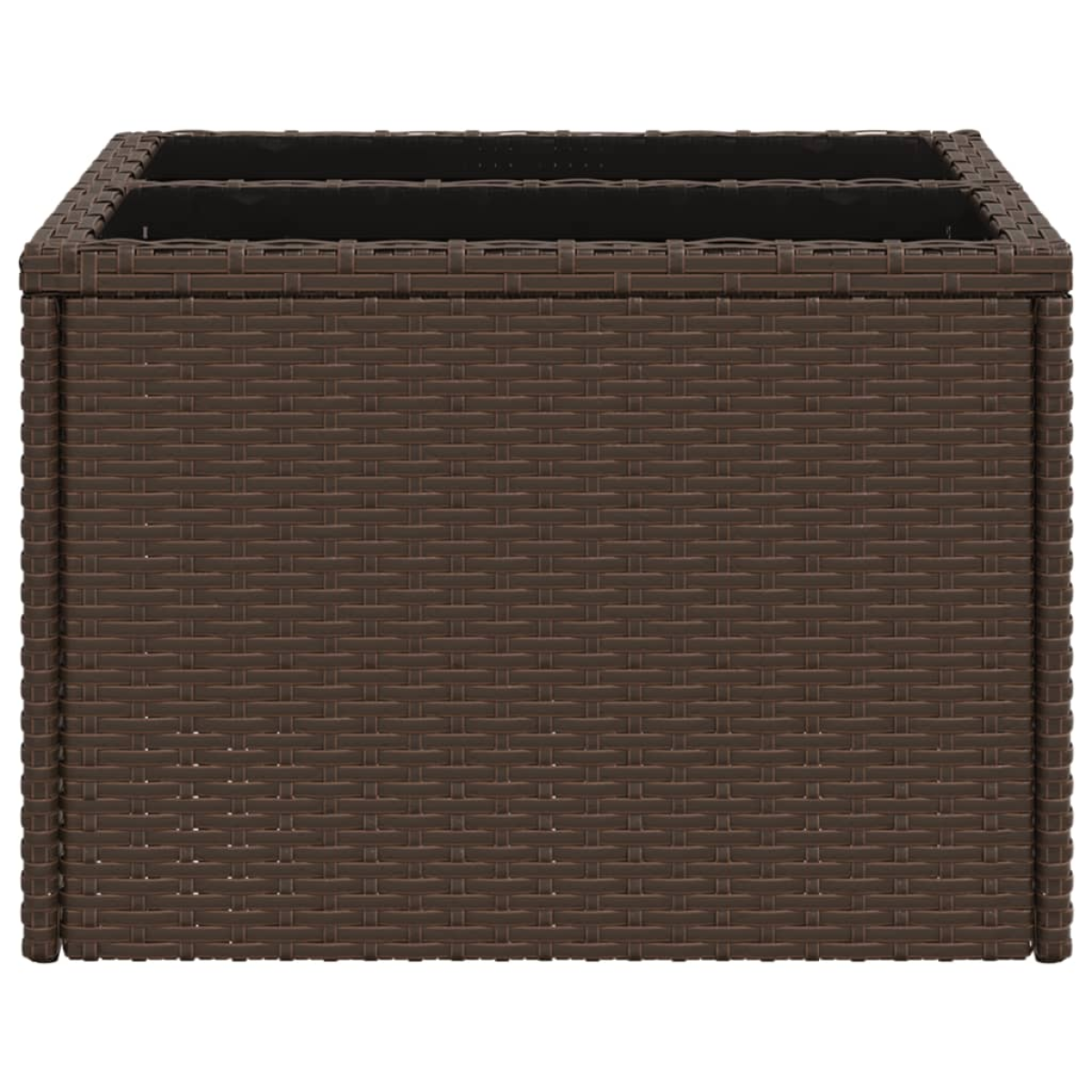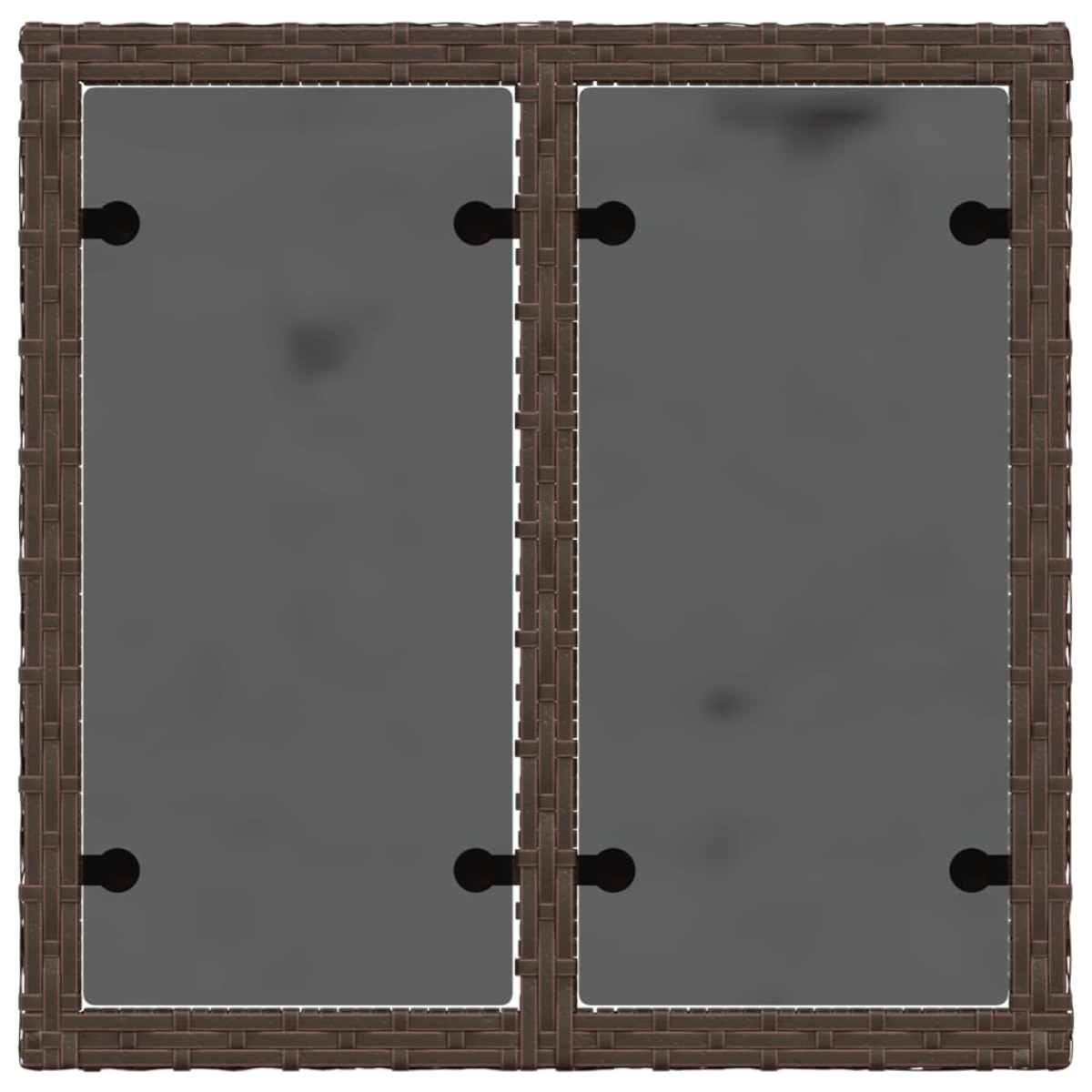 Gather around this garden table to enjoy a cup of coffee or have a chat with your family and friends in the garden, backyard, or on the patio! Durable material: PE rattan, also known as poly rattan, is a strong, low-maintenance synthetic material that looks like natural rattan. It's lightweight, easy to clean, and commonly used for outdoor furniture due to its durability and weather-resistant properties.Glass tabletop: The outdoor table's top is made from strong and durable tempered glass, making it easy to clean with a damp cloth and adding a touch of elegance to your outdoor space.Robust and stable frame: The powder-coated steel frame ensures that the garden furniture is strong and stable for daily outdoor use. Good to know:To make sure your outdoor furniture stays beautiful, we recommend protecting it with a waterproof cover.