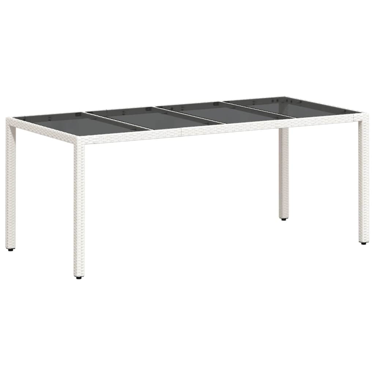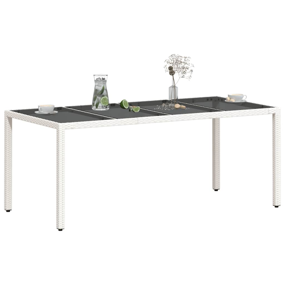 Gather around this garden table to enjoy a meal or have a chat with your family and friends in the garden, backyard, or on the patio! Durable material: PE rattan, also known as poly rattan, is a strong, low-maintenance synthetic material that looks like natural rattan. It's lightweight, easy to clean, and commonly used for outdoor furniture due to its durability and weather-resistant properties.Glass tabletop: The outdoor table's top is made from strong and durable tempered glass, making it easy to clean with a damp cloth and adding a touch of elegance to your outdoor space.Robust and stable frame: The powder-coated steel frame ensures that the garden furniture is strong and stable for daily outdoor use. Good to know:To make sure your outdoor furniture stays beautiful, we recommend protecting it with a waterproof cover.