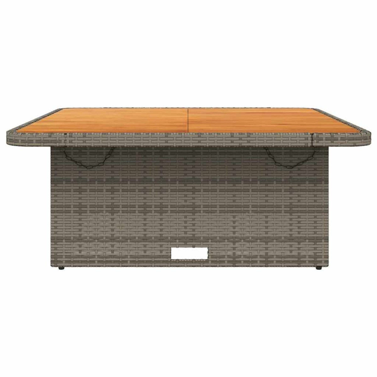 Gather around this versatile garden table to enjoy a cup of coffee or have a chat with your family and friends in the garden, backyard, or on the patio! Durable material: PE rattan, also known as poly rattan, is a strong, low-maintenance synthetic material that looks like natural rattan. It's lightweight, easy to clean, and commonly used for outdoor furniture due to its durability and weather-resistant properties. Adjustable tabletop: The tabletop can be lifted to make the table higher, which transforms the outdoor table from a coffee table to a dining table. It's perfect for having guests over or eating meals outside. Stable and easy-to-clean tabletop: This garden table has an acacia wood top that is sturdy, durable, and easy to clean with a damp cloth. Robust and stable frame: The powder-coated steel frame ensures that the garden furniture is strong and stable for daily outdoor use. Good to know: To make sure your outdoor furniture stays beautiful, we recommend protecting it with a waterproof cover.