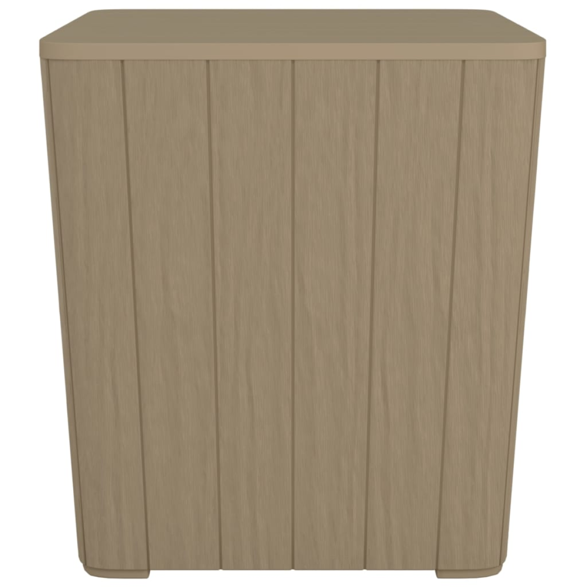 This stylish garden table with a convenient storage compartment and a removable lid is an ideal addition to your outdoor space. Durable material: Polypropylene (PP) is a popular plastic that is also one of the most used materials in outdoor furniture. It's lightweight, tough, and resistant to impact. Also, its resistance to UV rays and weathering makes it easy to clean and maintain.Imitation wood texture design: The outdoor table features an imitation wood texture design that adds a touch of natural charm to your outdoor living space.Extra storage area: The garden side table has a storage area under the removable lid, which is perfect for keeping your essentials within reach and well organised.Practical lid: With the lid closed as a tabletop, the sturdy balcony table is perfect for keeping your phone, book, snack, or drink within reach. Note:To make sure your outdoor furniture stays beautiful, we recommend protecting it with a waterproof cover.