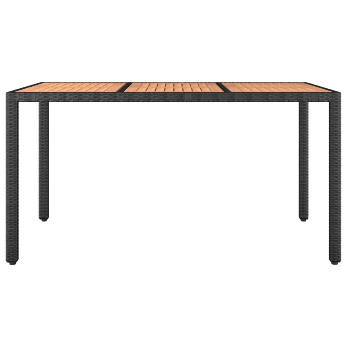This garden table with a wooden top, designed with clean and simple lines, is an excellent choice for your garden, patio, and other outdoor space. Durable material: PE rattan, also known as poly rattan, is weather resistant and easy to clean. It remains beautiful on the outside for a long period of time. It's more economical than other materials while offering great quality, convenience and an aesthetic look.Stable frame: Steel is an exceptionally hard and strong material. It offers sturdiness and stability.Wooden tabletop: The solid acacia wood tabletop is perfect for placing drinks, food and decorations. It's beautiful in appearance and easy to clean.Water-resistant design: Made of water-resistant material, this product can withstand humidity and rainy weather. It can also be easily cleaned with a damp cloth when needed. Good to know:To make assembly as easy as possible, each product is delivered with a manual. Note:To make sure your outdoor furniture stays beautiful, we recommend protecting it with a waterproof cover.