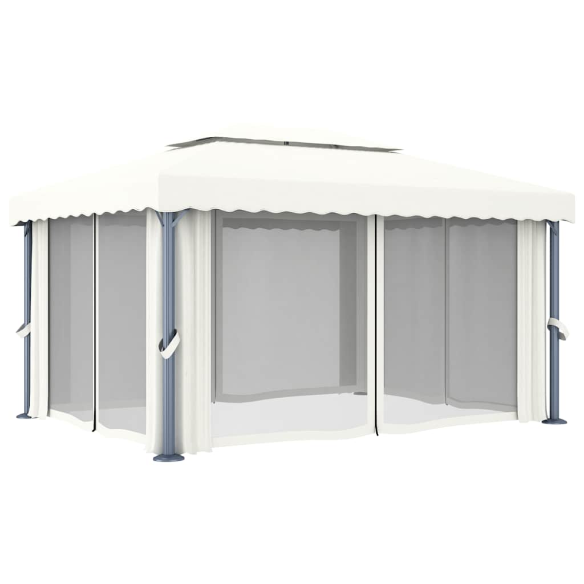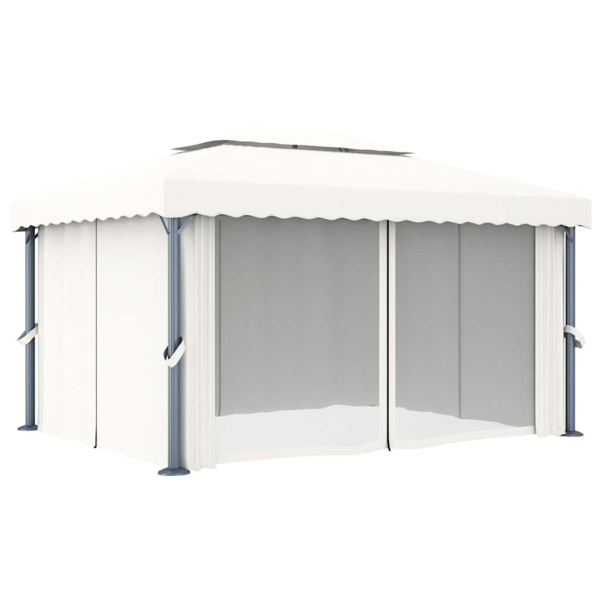 This stylish gazebo will surely turn your yard into a sophisticated and functional focal point! It is designed to provide a cool place for outdoor parties, family picnics, backyard barbecues and other social gatherings. It is constructed with aluminium pole and powder coated steel supporting tube, which ensures superior sturdiness and durability. The canopy and side walls are made of quality polyester fabric with PA coating, protecting you against the harmful rays and mild rain. A well-designed 2-tier roof ensures ample airflow underneath. Additionally, the curtains and mesh screens are included for full protection, giving you added privacy while keeping annoying mosquitoes and other insects away. Hooks and loop fasteners are included for easy attachment. What's more, the string light creates a cosy atmosphere in your garden when the sun goes down. The lights bring no pollutions to the environment as it is charged by solar energy during the day. Note: Please do not leave it out in adverse weather conditions.