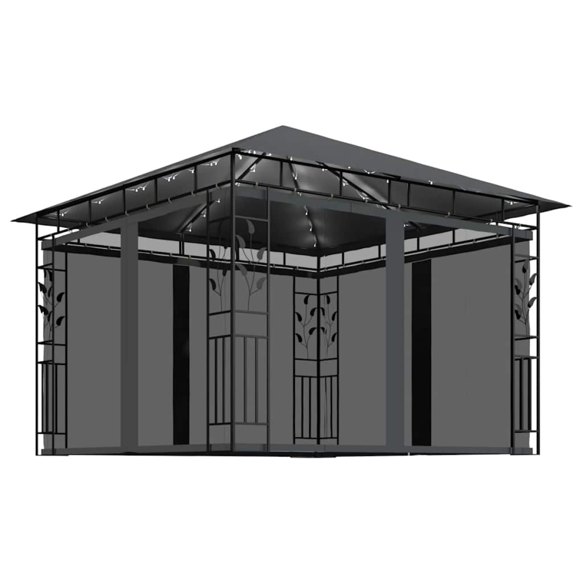 If you are looking for canopy addition for your outdoor activities, this garden gazebo is the perfect pair for your courtyard, allowing you to make the most out of your garden. The frame features sturdy metal construction which keeps the frame durable and steady. Fabric sunroof protects you from the searing sun, helping you enjoy better comfort during your outdoor activities. This tent, equipped with mosquito nets, guards you against insects and mosquitos. So you can enjoy your outdoor leisure time without disturbance. Also, this gazebo can be installed in a short time. Additionally, the string light creates a cosy atmosphere in your garden when the sun goes down. The lights bring no pollutions to the environment as it is charged by solar energy during the day. Note: This product should NEVER be used under bad weather, such as strong wind, heavy rain, heavy snowfall, storm, etc.