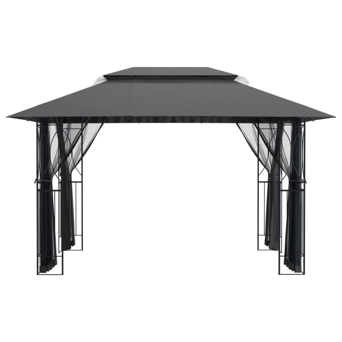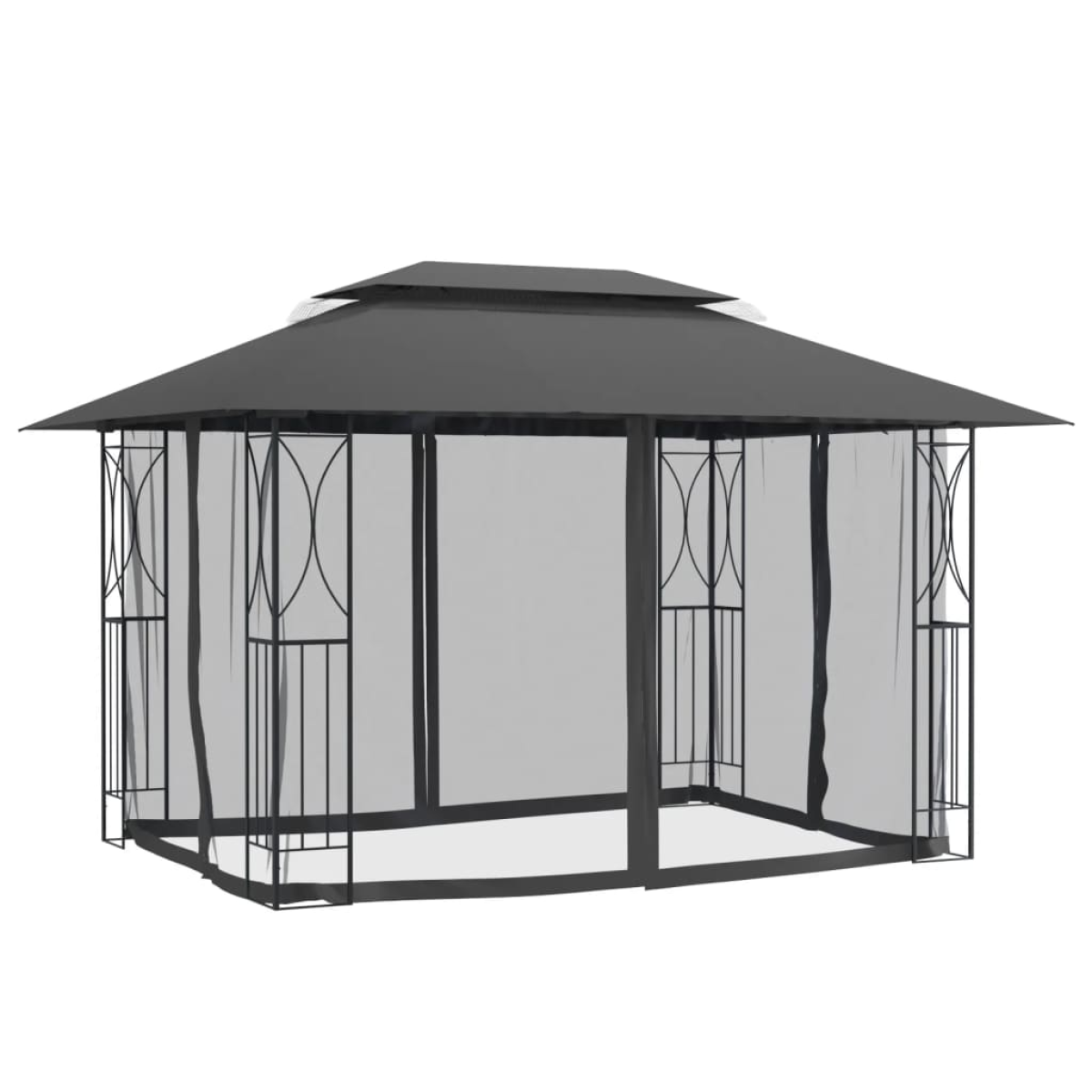 Do you want to enjoy a pleasant relaxing time with your family and friends on a hot summer day or a rainy day? This trendy gazebo is just what you need! Steel frame: Steel is an exceptionally hard and strong material. It offers sturdiness and stability. Spacious space: This garden gazebo is spacious enough to gather your family and friends inside without feeling crowded.Double-tiered roof: The double-tiered roof with PA coating is water resistant and also provides excellent air circulation to ensure stability in windy conditions.Mesh sidewalls: The mesh fabric with zips is easy to open and close, protecting you from bright sunlight and annoying small insects while providing good ventilation and clear vision.Wide applications: This party gazebo is perfect for family gatherings, picnics, parties, weddings, etc., and adds an elegant touch to your garden. Good to know:To make assembly as easy as possible, each product is delivered with a manual.