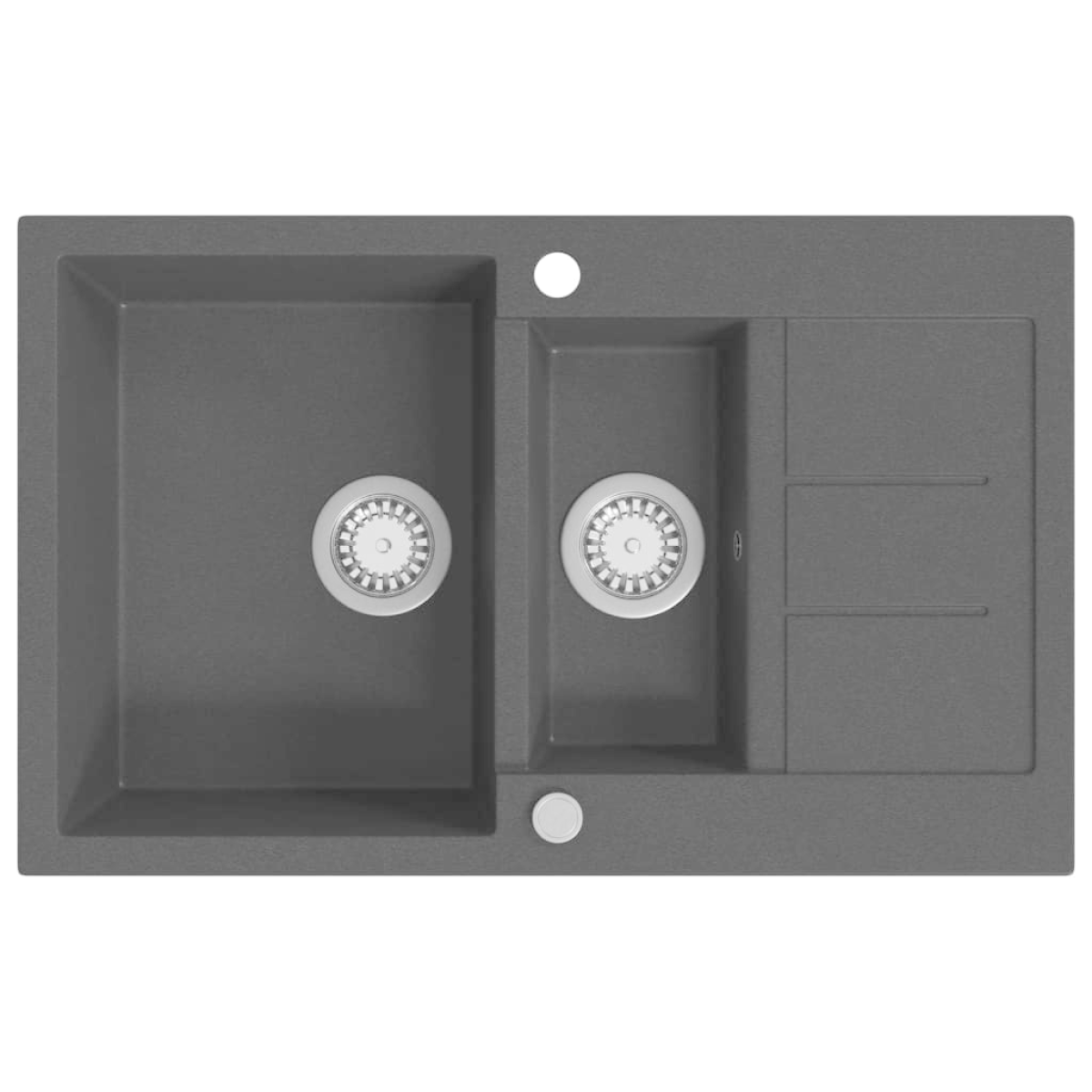 Our granite kitchen sink will be a timeless addition to your kitchen decor. It has two basins and a sleek design. The high-quality granite used makes the sink heat resistant, scratch & impact resistant and easy to clean. It is fully reversible which means that the sink can be fitted on both the right and left side. Thanks to the partially pre-drilled hole, it allows you to knock it out easily with a small hammer or round tube-like tools to install the faucet. A stainless steel hole cover is included for protecting the already-drilled hole from dirt or dust. A basket strainer is also included for easy debris removal. The sink is easy to assemble.