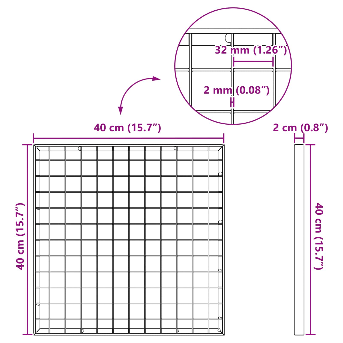 - Overall dimensions: 40 x 40 x 2 cm (L x W x H)