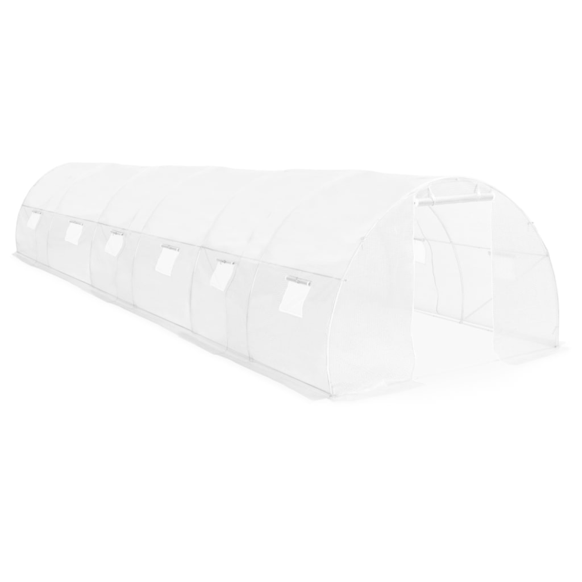 This spacious greenhouse can accommodate a considerable number of fruits, vegetables and plants. This plant house will be a great solution for protecting your plants against wind, rain, sunshine and bird damage. The greenhouse is made of 170g/m² PE mesh fabric, which is 25% heavier than the standard mesh fabric of many competitors. This plant house has a sturdy and rust-proof galvanised steel frame for extra stability. This greenhouse is equipped with twelve 38x38 cm windows for ventilation and one 100x185 cm door as well. The greenhouse is easy to assemble. We recommend adding the foundation for added sturdiness. Please note the roof of our greenhouse cannot withstand heavy snowfall. Warning: The greenhouse is not a construction building or conservatory, intended for leisure purposes. It is an impermanent standalone agricultural installation intended for hobby gardening only.
