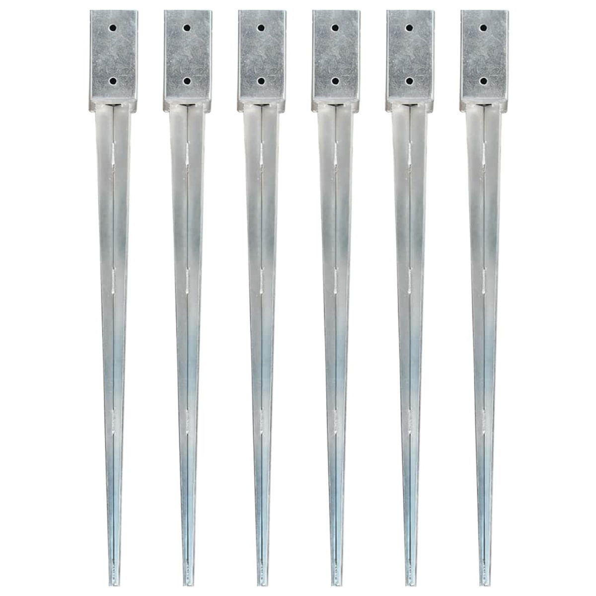 vidaXL Ground Spikes 6 pcs Silver 7x7x90 cm Galvanised Steel