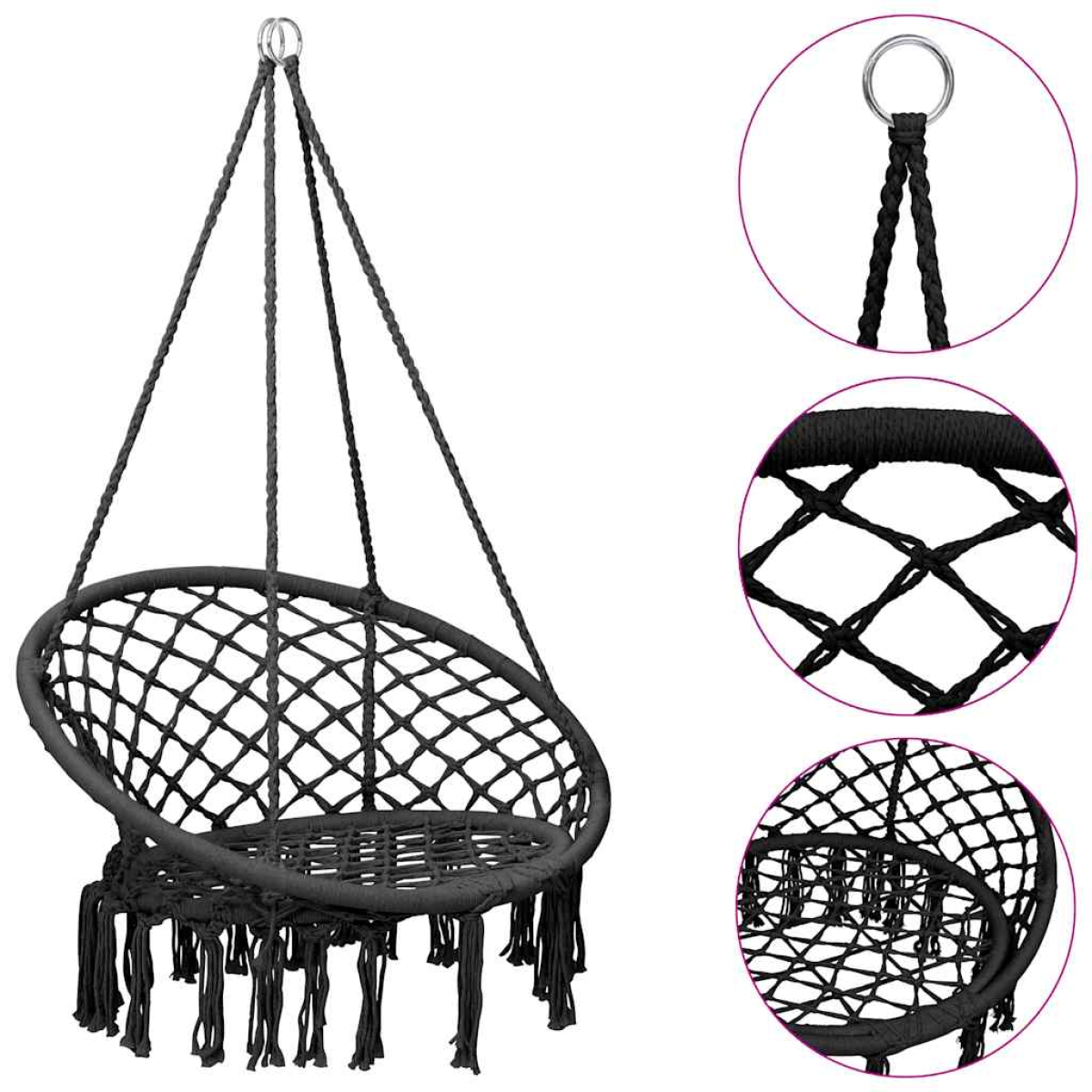Imagine how joyful your children are when they have fun in your backyard with this hammock swing chair! This tree swing features a steel frame and wear-resistant rope net, making it sturdy and ensuring high load-bearing capacity. You can adjust the back of the chair’s height to make it fit just right. You can also adjust the height of the entire swing chair to keep kids' feet on or off the ground as per their preference. The swing chair provides more support and stability, so your children don’t have to clutch the ropes in fear of falling off. That way, they can lounge and relax comfortably while at rest or while swinging. Each adjustable suspension rope connects the swing firmly, while four points provide equal pulling force to maintain balance and ensure safety. Additionally, the tassel design adds to its beauty.