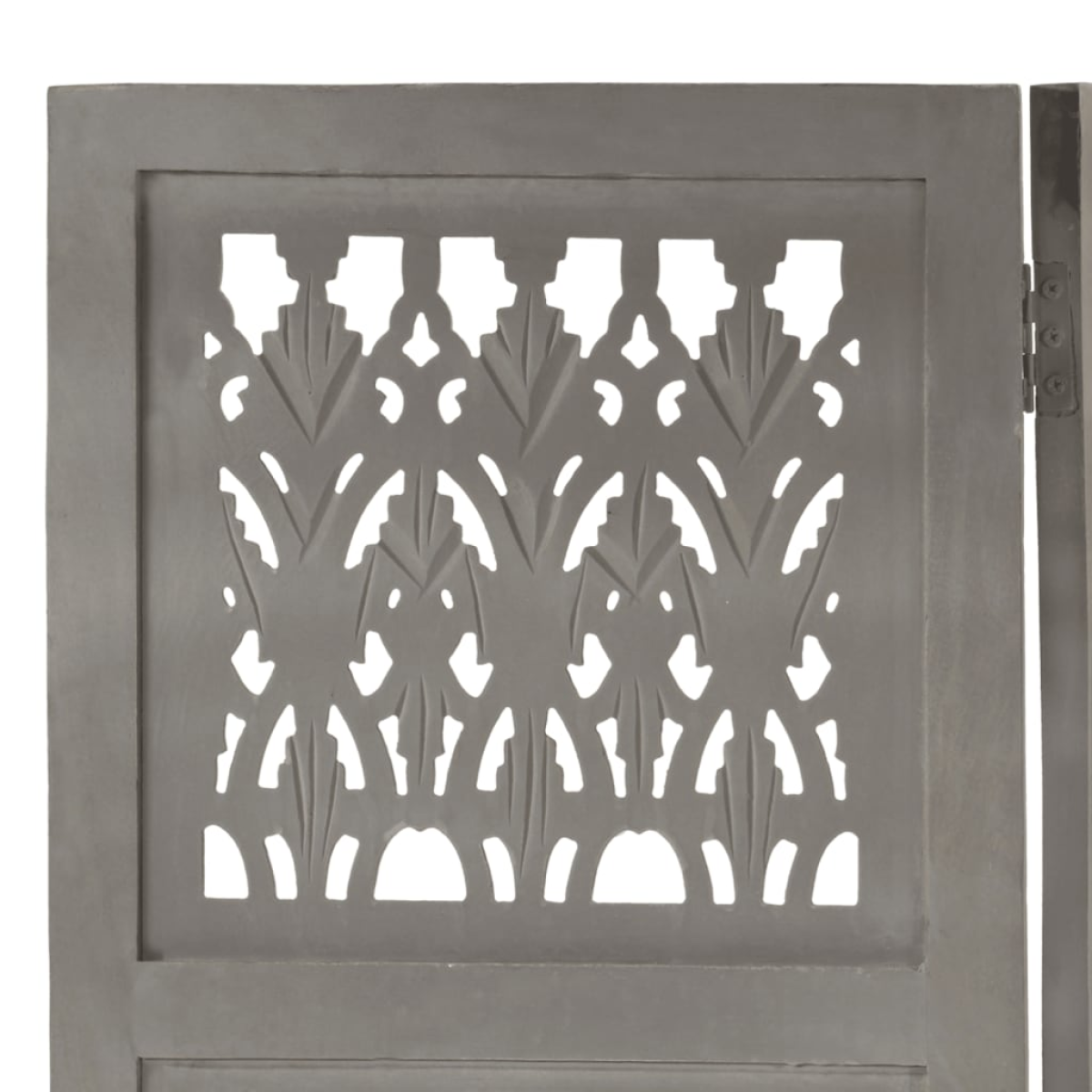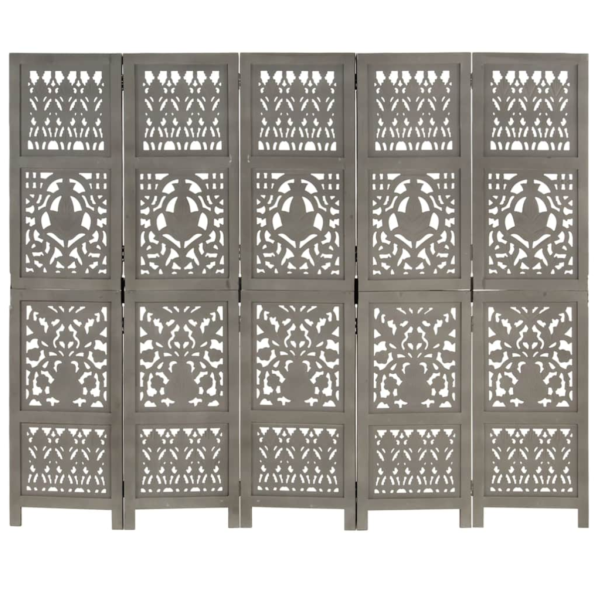 vidaXL Hand Carved 5-Panel Room Divider Grey 200x165 cm Solid Mango Wood