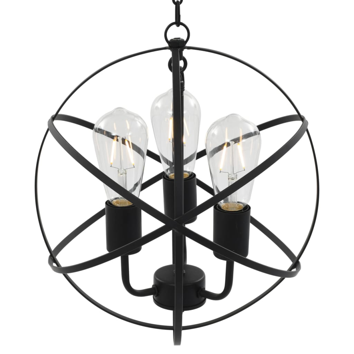vidaXL Hanging Lamp Black Sphere 3 x E27 Bulbs
