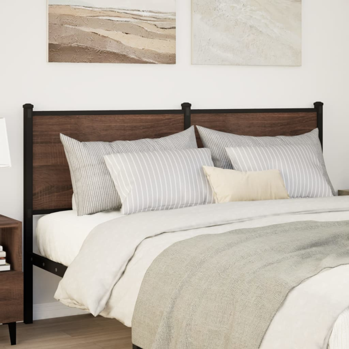 Featuring a stylish design, this classic headboard gives your bed frame a complete look and suits any bedroom. Long-lasting material: The engineered wood is of exceptional quality with a smooth surface and also features strength, stability, and resistance to moisture.Sturdy and stable legs: The metal legs ensure sturdiness and stability.Excellent support: The bed headboard provides you with excellent back support when you sit up in bed to read or watch TV. Good to know:The bed frame and mattress are not included in the delivery.