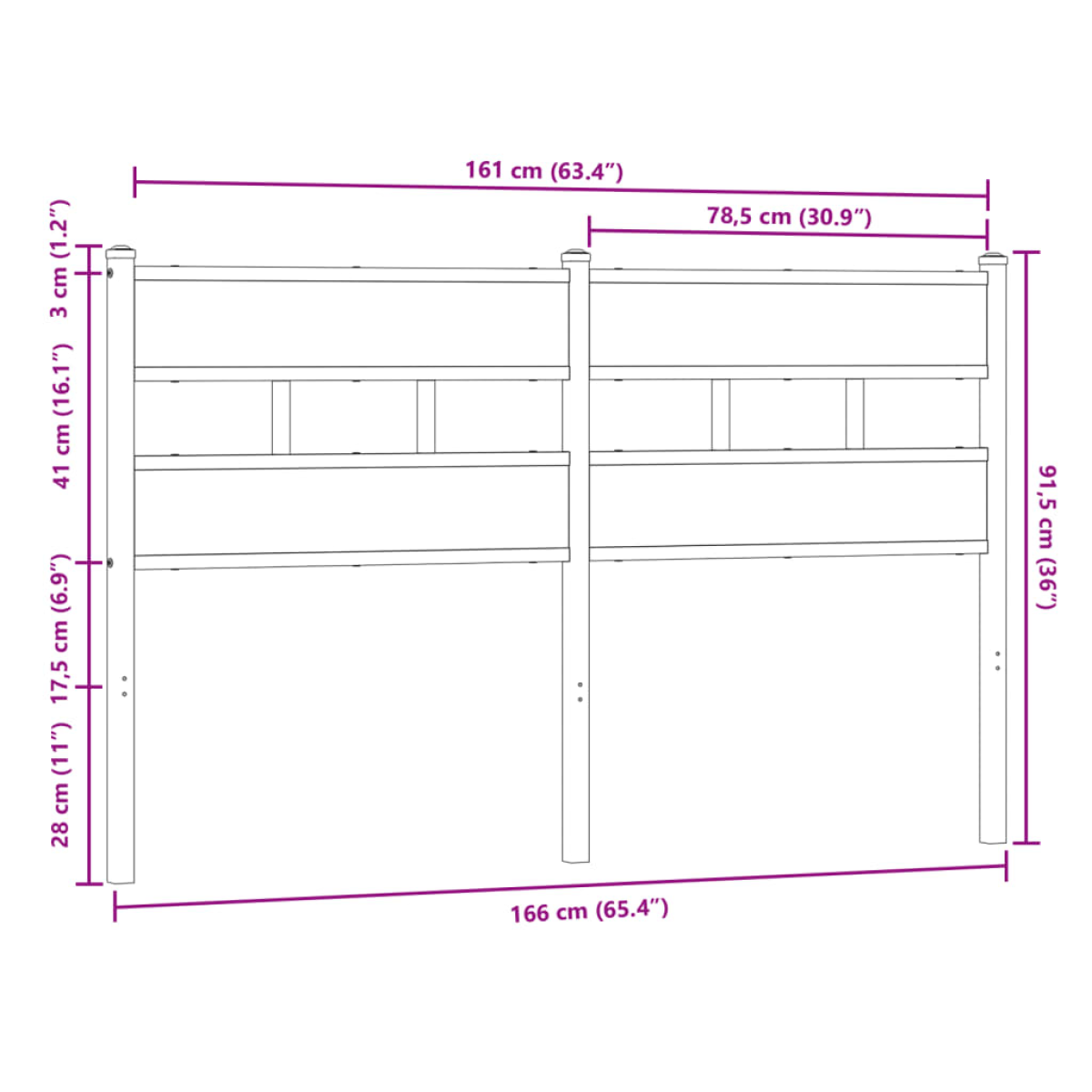 Featuring a stylish design, this classic headboard gives your bed frame a complete look and suits any bedroom.Robust metal construction: The bed header is made from steel. Steel is an exceptionally hard and strong material and offers exceptional sturdiness and stability. The powder coating on steel creates a protective layer against wear and tear.Sturdy and stable legs: The metal legs ensure sturdiness and stability.Excellent support: The bed headboard provides you with excellent back support when you sit up in bed to read or watch TV.Good to know:The bed frame and mattress are not included in the delivery.To make assembly as easy as possible, each product is delivered with a manual.