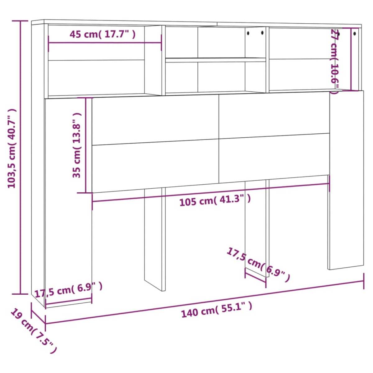 vidaXL Headboard Cabinet Concrete Grey 140x19x103.5 cm