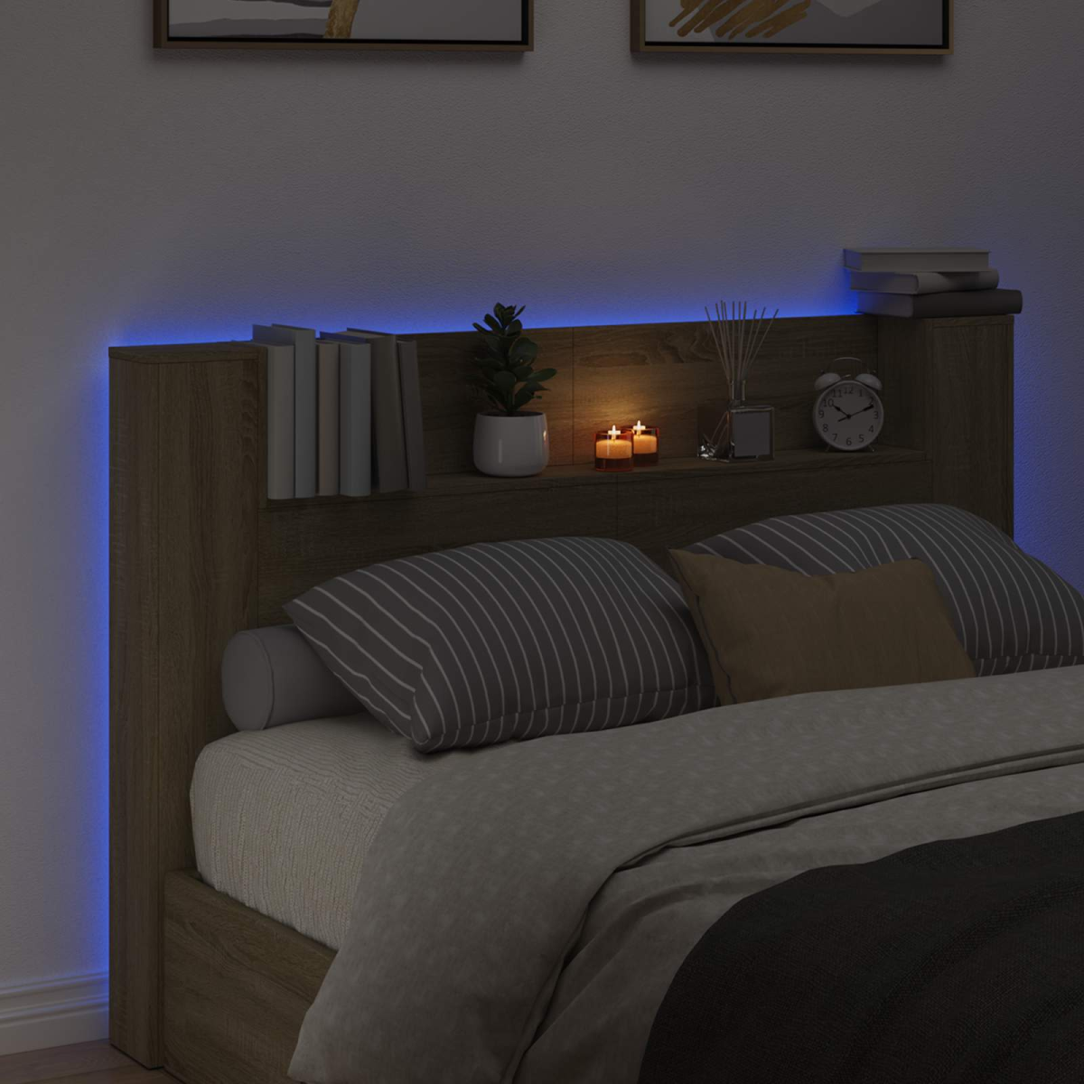 vidaXL Headboard Cabinet with LED Sonoma 160 x 16.5 x 103.5 cm