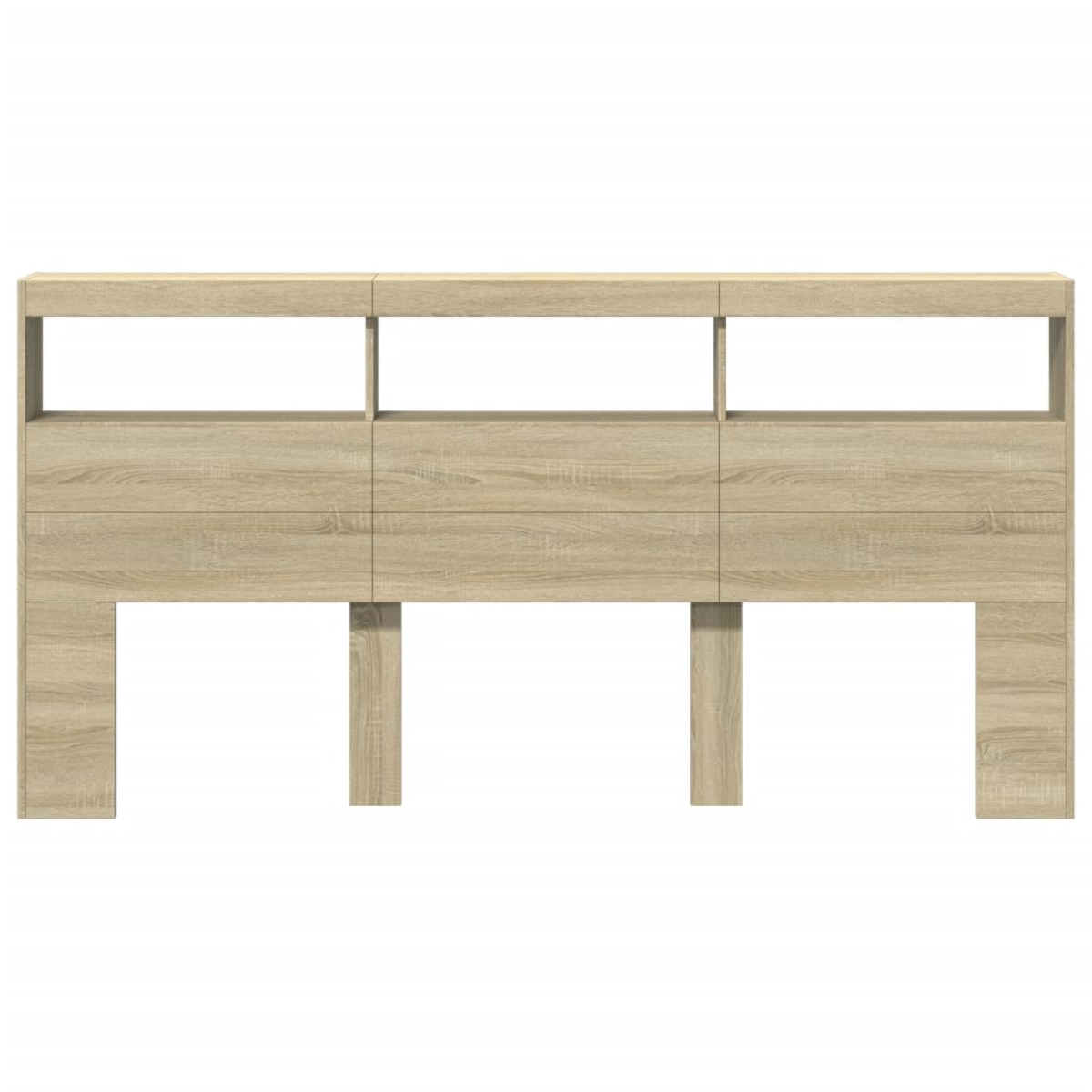 This headboard cabinet with LED, featuring a stylish design, gives your bed frame a stunning modern touch and is perfectly suitable in any bedroom. Durable material: The engineered wood is of exceptional quality with smooth surface and also features strength, stability and resistance to moisture.RGB LED lights: The bed headboard is equipped with vibrant RGB LED lights. With various customisable menus, you can effortlessly change the colour of the lights and even set them to adjust automatically. These LED lights not only enhance the contemporary look of the bed header but also add to its trendy appeal.Ample storage space: Featuring compartments and a sturdy top, the bed headboard cabinet is perfect for displaying your books, decorative items, picture frames and alarm clocks.Excellent support: The headboard for bed provides you with excellent back support when you sit up in bed to read or watch TV. Good to know:The delivery includes LED headboard only. The bed frame and mattress are not included. You can check our shop for the matching frames and mattresses.The product has a USB connector that requires a certified 5V USB power source (not included). Warning:To prevent it from tipping over, this product must be used with the provided wall attachment device.