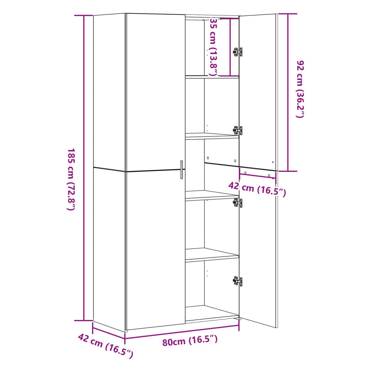 • Overall dimensions: 80 x 42 x 185 cm (L x W x H)