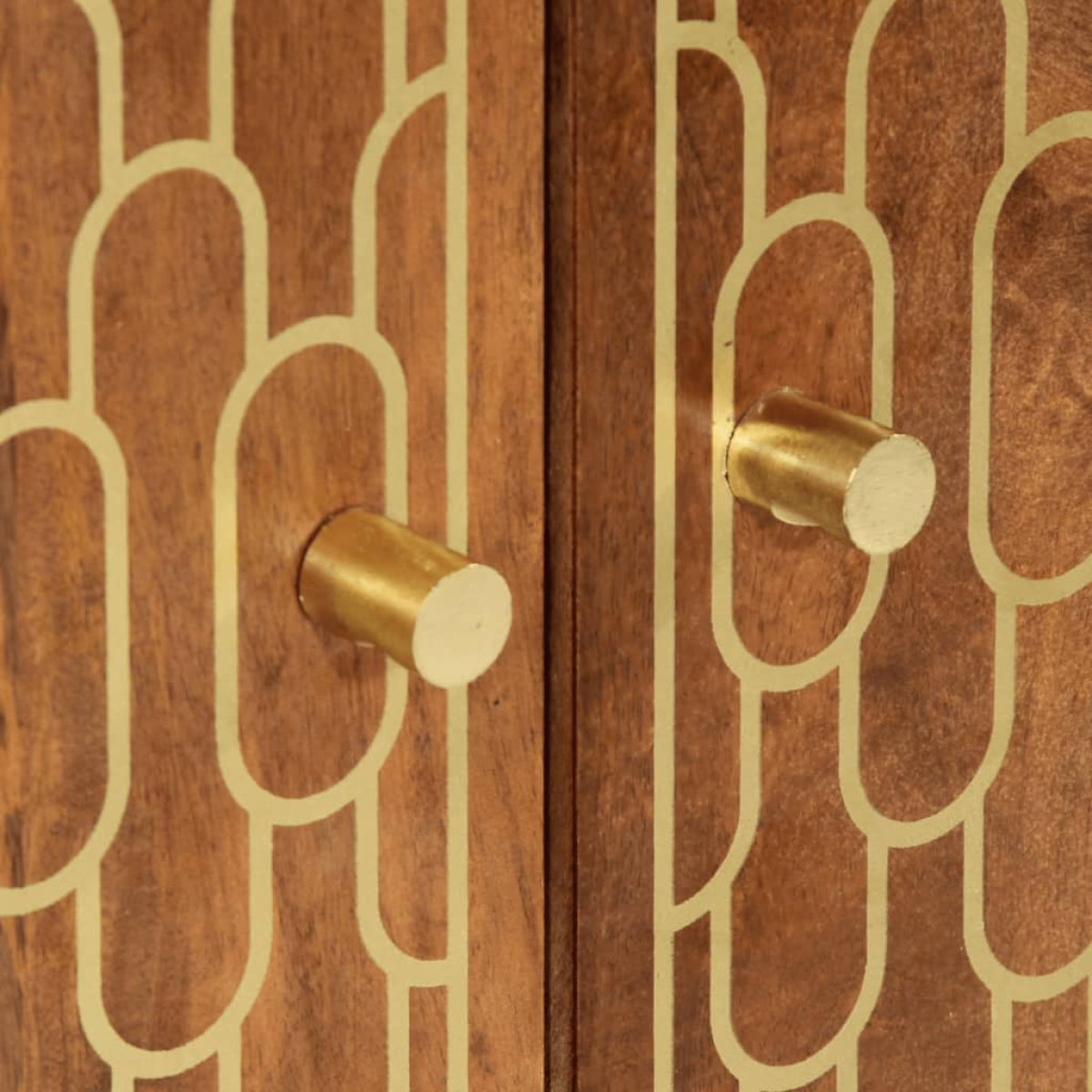 - Material: Solid mango wood with honey brown finish, engineered wood