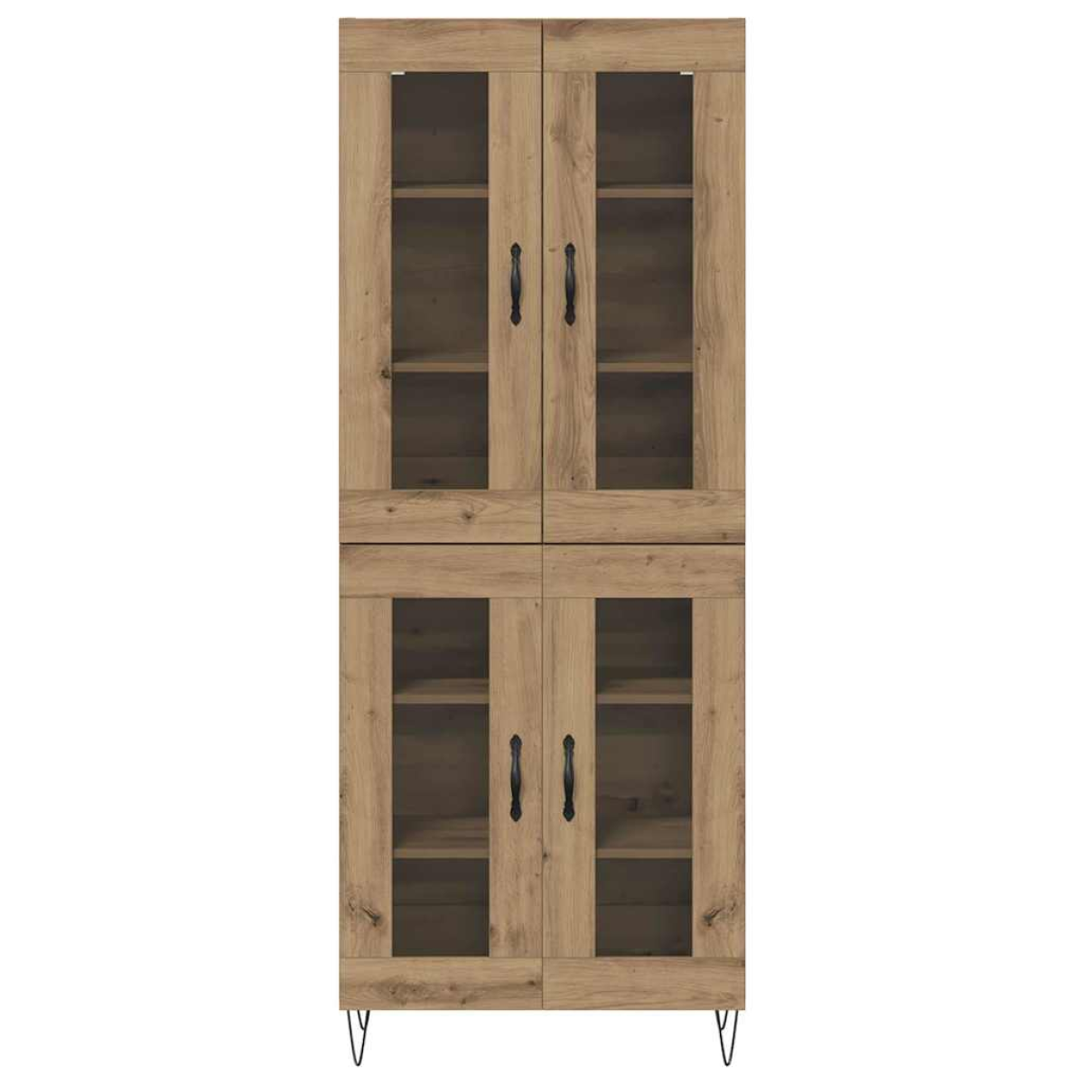 This Modern Highboard offers a sophisticated storage solution for your living or dining room. With its sleek lines and minimalist design, it complements a wide range of interior styles, adding a touch of elegance and functionality. The highboard showcases a contemporary look with a perfect balance between style and practicality, making it a standout piece in any room. Designed for indoor use only, this sideboard accommodates all your storage needs with spacious compartments behind elegant transparent doors and sturdy metal handle pulls. Materials: The sideboard is crafted from high-quality engineered wood, ensuring stability and longevity. This durable material is favored for its excellent performance in maintaining shape and appearance over time, making it an ideal choice for demanding households. Easy to maintain and moisture-resistant, engineered wood contributes to the elegant yet pragmatic essence of modern interior solutions. Included Components: The large sideboard includes transparent glass doors, a feature that elevates both functionality and style. The glass allows visibility of your cherished items while providing a protective barrier against dust. Paired with robust hairpin legs made from iron, the highboard ensures a stable, stylish foundation. This thoughtful combination of components results in a product that caters to both aesthetics and utility. Features /Function /Design: Exhibiting a long-lasting build, the highboard’s hinge doors and metal bow handles offer ease of access and use, allowing you to organize and store with convenience. The doors’ translucent nature adds a dimension of openness, enhancing the room’s atmosphere. Embrace the simplicity and function embedded in the design, perfect for modern living environments. Recommended Uses: This versatile unit suits various settings and functions, such as storing diningware in the dining room or books and decorative elements in the living room. Its clean lines and thoughtful craftsmanship blend seamlessly with minimalist decor, offering not only storage but also an appealing display space for your curated collections. Care &Maintenance: Following assembly instructions is imperative—utilize a screwdriver for a swift setup. To maintain stability and safety, secure the highboard to the wall to prevent any tipping. Routinely clean with a dry cloth to preserve its pristine appearance, ensuring it remains a cherished part of your home for years.
