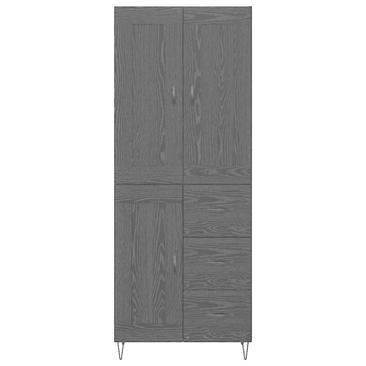 This Modern Highboard is a striking addition to any dining room, offering both style and practical use with its contemporary design. The piece can easily become the focal point in your living space, thanks to its sleek, minimalist lines and its functional structure. Whether you are displaying glassware, organizing dinner sets, or storing linen, this sideboard offers a chic, organized presentation. The modern aesthetic of the highboard allows it to pair seamlessly with various décor styles, bringing a touch of sophistication and elegance to your home. Engineered Wood Structure: Crafted from high-quality engineered wood, this sideboard boasts a robust framework that ensures long-lasting durability. The sophisticated finish is polished yet practical, reducing maintenance efforts while offering a refined appearance that can withstand everyday wear and tear in busy dining environments. Capacious Storage Solution: Featuring ample board shelves, this sideboard provides ample storage space, helping you efficiently organize your dinnerware, cookbooks, or household essentials. The board shelves are versatile, allowing for a variety of organizational setups to fit your specific needs, enhancing accessibility and tidiness in dining spaces. Convenient Hinge Doors: Equipped with hinge doors for smooth opening and closing, the design includes an intuitive access system that minimizes clutter and maintains an understated, closed look when not in use, optimizing both functionality and visual appeal in smaller spaces. Modern Metal Accents: Complemented by metal bow pulls and hairpin legs, the contemporary adornments add a touch of industrial charm, while ensuring reliable performance. The metallic fixtures provide support and serve as aesthetic accents that enhance the overall modern vibe of any interior. Assembly &Care Instructions: Designed for straightforward assembly using a screwdriver, this unit is best put together by two people. Adhering to the manufacturer's manual ensures proper setup and longevity. Simply wipe with a dry cloth to keep it clean; avoid harsh chemicals to preserve its luster.