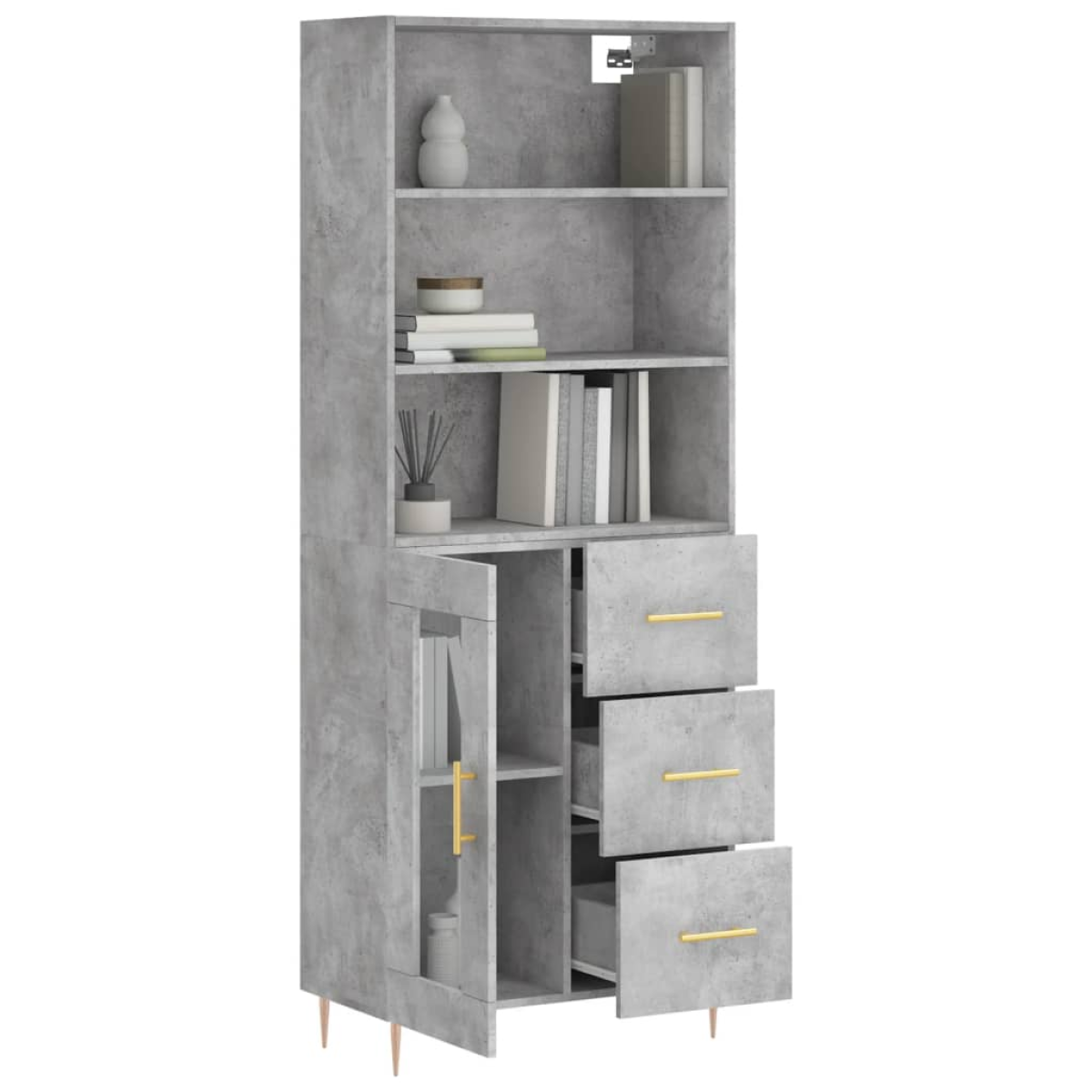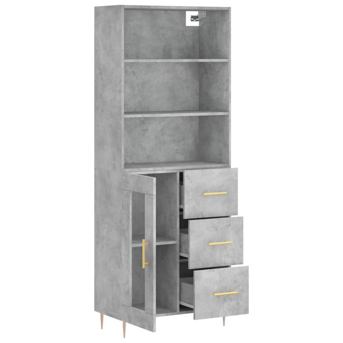Are you hunting for a stylish highboard? This highboard adds an elegant charm to your existing interior! Durable material: The engineered wood is of exceptional quality with a smooth surface and features strength, stability and resistance to moisture.Ample storage space: The cabinet provides ample storage space for keeping your various daily essentials well-organised and within easy reach.Practical door: Keep your space clutter-free by hiding small essentials behind the door of the storage cabinet.Iron feet: The iron feet add a calm style to your interior while ensuring stability. Warning:To prevent it being overturned, this product must be used with the provided wall attachment device. Good to know:Screws and plugs for inside the wall are not included. We advise to find and use screws and plugs suitable specifically for your walls. If you're not sure, you can consult with a professional. Please read and follow each step of the instructions.