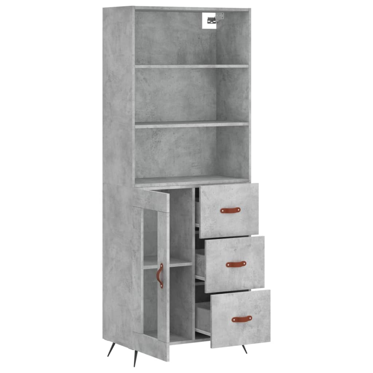 Are you hunting for a stylish highboard? This highboard adds an elegant charm to your existing interior! Durable material: The engineered wood is of exceptional quality with a smooth surface and features strength, stability and resistance to moisture.Ample storage space: The cabinet provides ample storage space for keeping your various daily essentials well-organised and within easy reach.Practical door: Keep your space clutter-free by hiding small essentials behind the door of the storage cabinet.Iron feet: The iron feet add a calm style to your interior while ensuring stability. Warning:To prevent it being overturned, this product must be used with the provided wall attachment device. Good to know:Screws and plugs for inside the wall are not included. We advise to find and use screws and plugs suitable specifically for your walls. If you're not sure, you can consult with a professional. Please read and follow each step of the instructions.