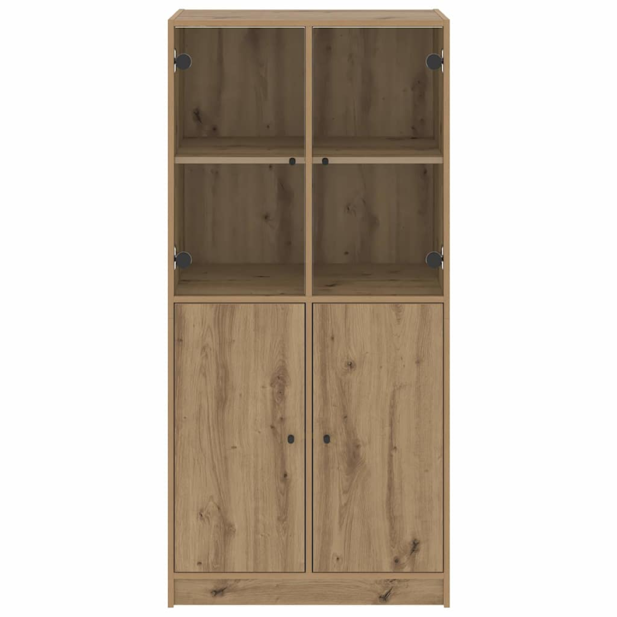 This highboard provides an ideal solution for organising your books and will add a touch of modern charm to your interior. Durable and sturdy material: The engineered wood is of exceptional quality with smooth surface and also features strength, stability and resistance to moisture.Ample storage space: The side cabinet offers ample storage space for keeping your collection of books, magazines, and documents in good order.Stable and sturdy top: The top of the tall storage cabinet is perfect for displaying your decorative items, picture frames, and potted plants.Practical design: Keep your essentials free from dust by hiding them behind doors. In addition, the black handles make it easy to open the tall cabinet. Warning:To prevent it from tipping over, this product must be used with the provided wall attachment device.