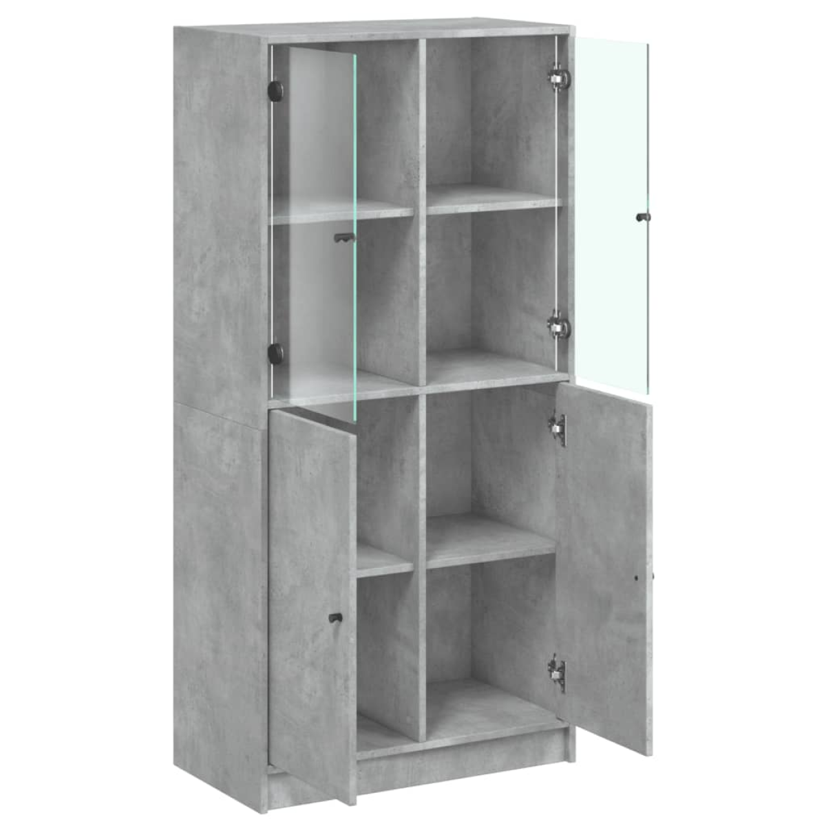 This highboard provides an ideal solution for organising your books and will add a touch of modern charm to your interior. Durable and sturdy material: The engineered wood is of exceptional quality with smooth surface and also features strength, stability and resistance to moisture.Ample storage space: The side cabinet offers ample storage space for keeping your collection of books, magazines, and documents in good order.Stable and sturdy top: The top of the tall storage cabinet is perfect for displaying your decorative items, picture frames, and potted plants.Practical design: Keep your essentials free from dust by hiding them behind doors. In addition, the black handles make it easy to open the tall cabinet. Warning:To prevent it from tipping over, this product must be used with the provided wall attachment device.