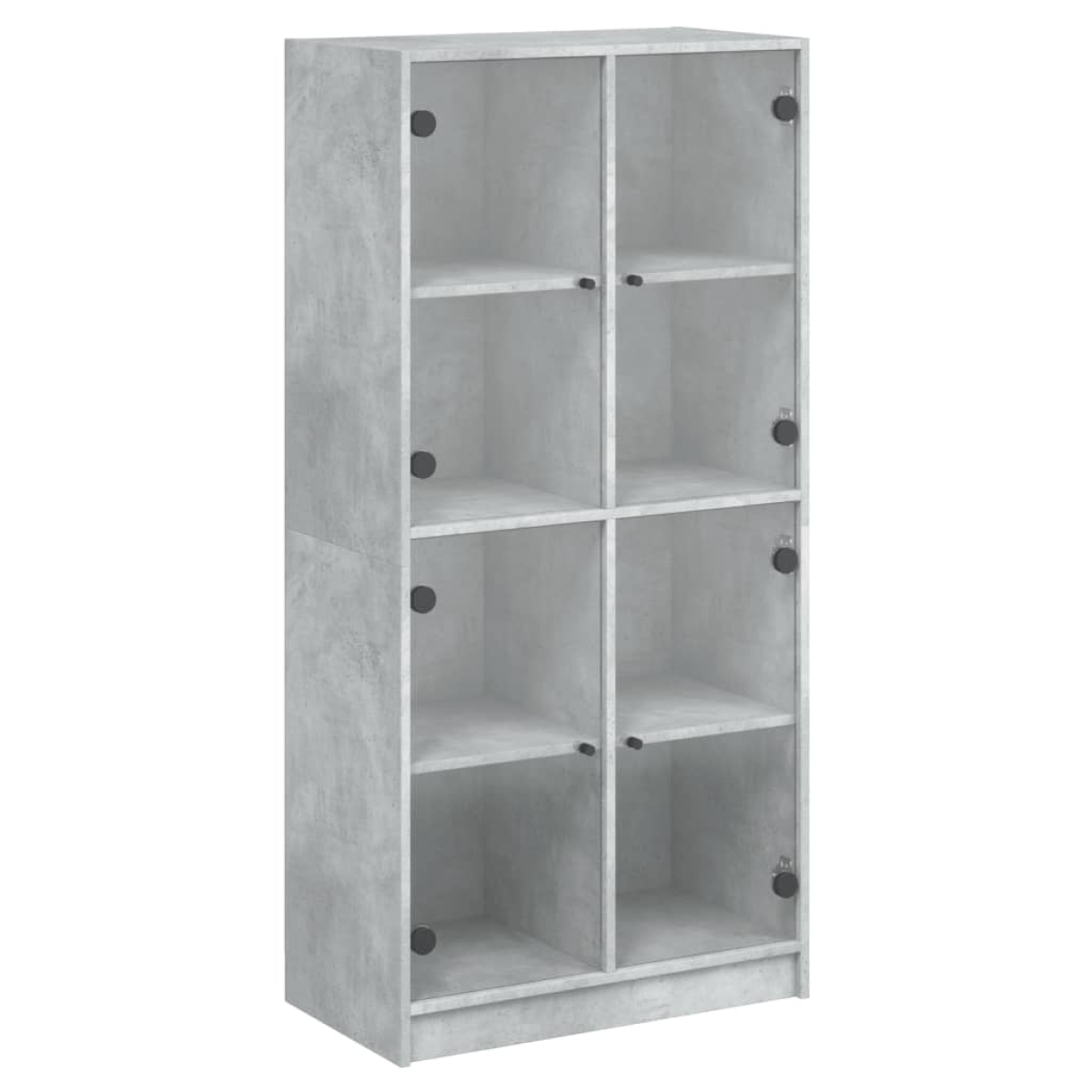 This highboard provides an ideal solution for organising your books and will add a touch of modern charm to your interior. Durable and sturdy material: The engineered wood is of exceptional quality with smooth surface and also features strength, stability and resistance to moisture.Ample storage space: The side cabinet offers ample storage space for keeping your collection of books, magazines, and documents in good order.Stable and sturdy top: The top of the tall storage cabinet is perfect for displaying your decorative items, picture frames, and potted plants.Practical design: Keep your essentials free from dust by hiding them behind doors. In addition, the black handles make it easy to open the tall cabinet. Warning:To prevent it from tipping over, this product must be used with the provided wall attachment device.