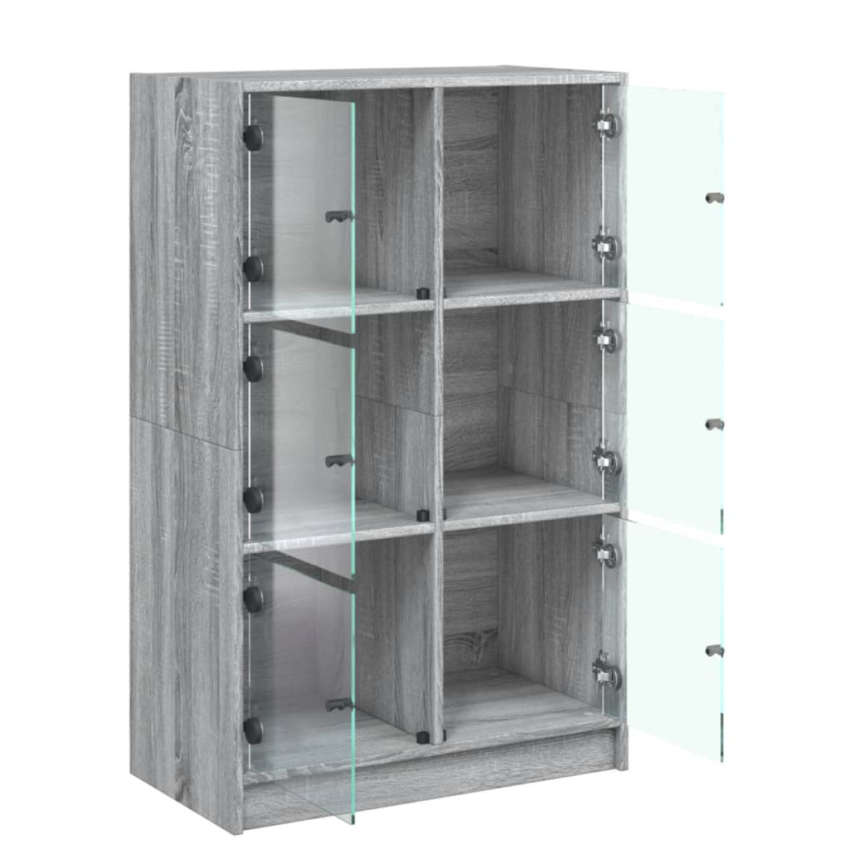 This highboard provides an ideal solution for organising your books and will add a touch of modern charm to your interior. Durable and sturdy material: The engineered wood is of exceptional quality with smooth surface and also features strength, stability and resistance to moisture.Ample storage space: The side cabinet offers ample storage space for keeping your collection of books, magazines, and documents in good order.Stable and sturdy top: The top of the tall storage cabinet is perfect for displaying your decorative items, picture frames, and potted plants.Practical design: Keep your essentials free from dust by hiding them behind doors. In addition, the black handles make it easy to open the tall cabinet. Warning:To prevent it from tipping over, this product must be used with the provided wall attachment device.