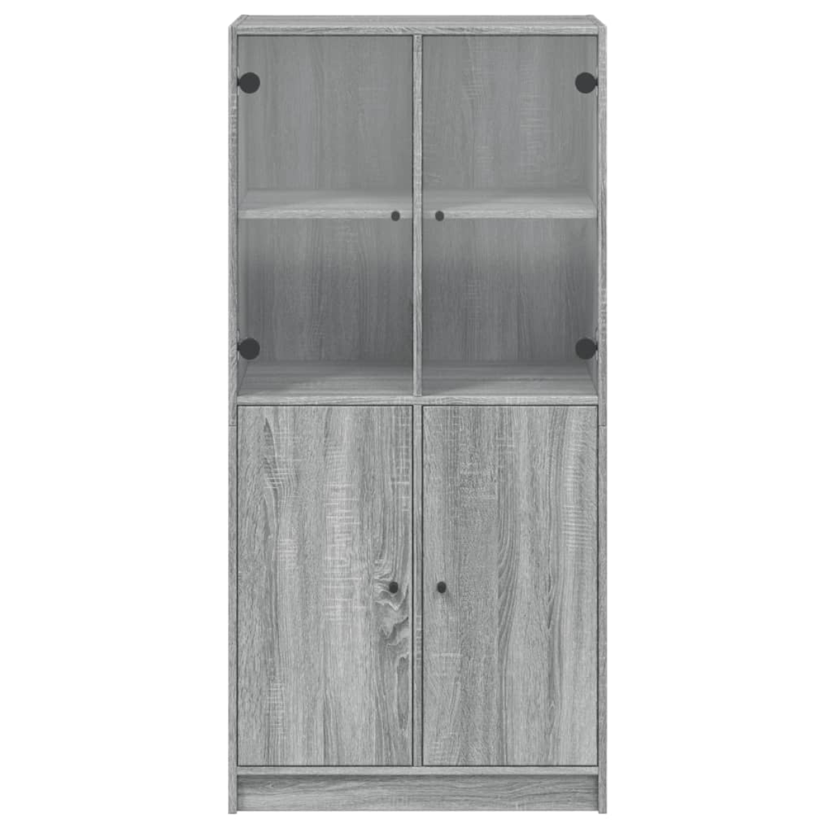 This highboard provides an ideal solution for organising your books and will add a touch of modern charm to your interior. Durable and sturdy material: The engineered wood is of exceptional quality with smooth surface and also features strength, stability and resistance to moisture.Ample storage space: The side cabinet offers ample storage space for keeping your collection of books, magazines, and documents in good order.Stable and sturdy top: The top of the tall storage cabinet is perfect for displaying your decorative items, picture frames, and potted plants.Practical design: Keep your essentials free from dust by hiding them behind doors. In addition, the black handles make it easy to open the tall cabinet. Warning:To prevent it from tipping over, this product must be used with the provided wall attachment device.