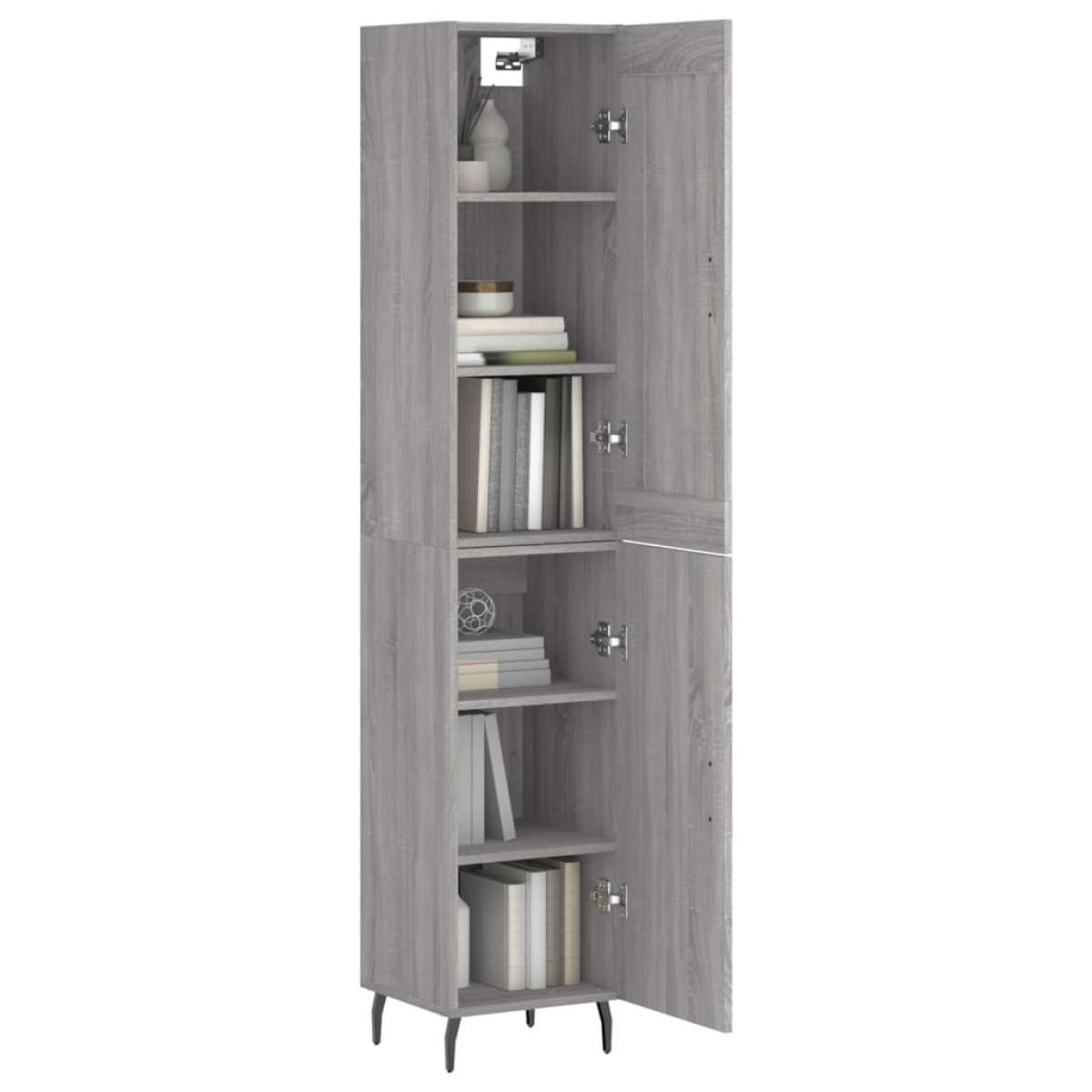 Are you hunting for a stylish highboard? This highboard adds an elegant charm to your existing interior! Durable material: The engineered wood is of exceptional quality with a smooth surface and features strength, stability and resistance to moisture. Made of engineered wood, the cabinet is sturdy and durable.Ample storage space: The side cabinet provides ample storage space for keeping your various daily essentials well organised and within easy reach.Practical doors: Keep your space clutter-free by hiding small essentials behind the doors of the tall cabinet.Metal feet: The metal feet add a calm style to your interior while ensuring stability. Warning:To prevent it being overturned, this product must be used with the provided wall attachment device. Good to know:Screws and plugs for inside the wall are not included. We advise to find and use screws and plugs suitable specifically for your walls. If you're not sure, you can consult with a professional. Please read and follow each step of the instructions.