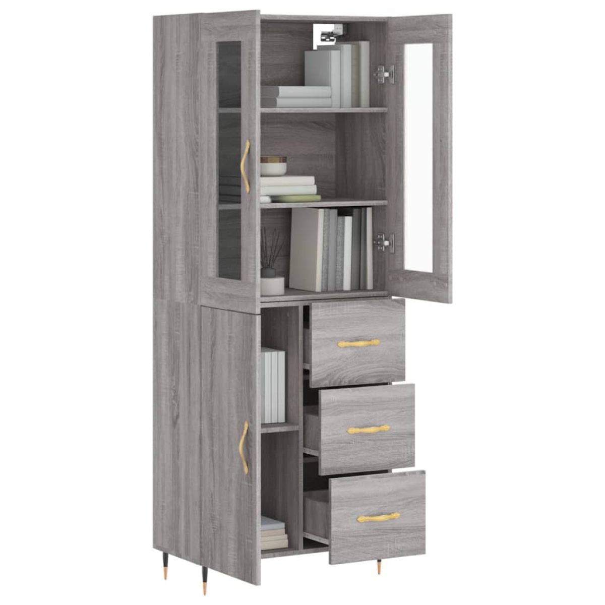 Are you hunting for a stylish highboard? This highboard adds an elegant charm to your existing interior! Durable material: The engineered wood is of exceptional quality with a smooth surface and features strength, stability and resistance to moisture.Ample storage space: The cabinet provides ample storage space for keeping your various daily essentials well-organised and within easy reach.Metal feet: The metal feet add a calm style to your interior while ensuring stability. Warning:To prevent it being overturned, this product must be used with the provided wall attachment device. Good to know:Screws and plugs for inside the wall are not included. We advise to find and use screws and plugs suitable specifically for your walls. If you're not sure, you can consult with a professional. Please read and follow each step of the instructions.