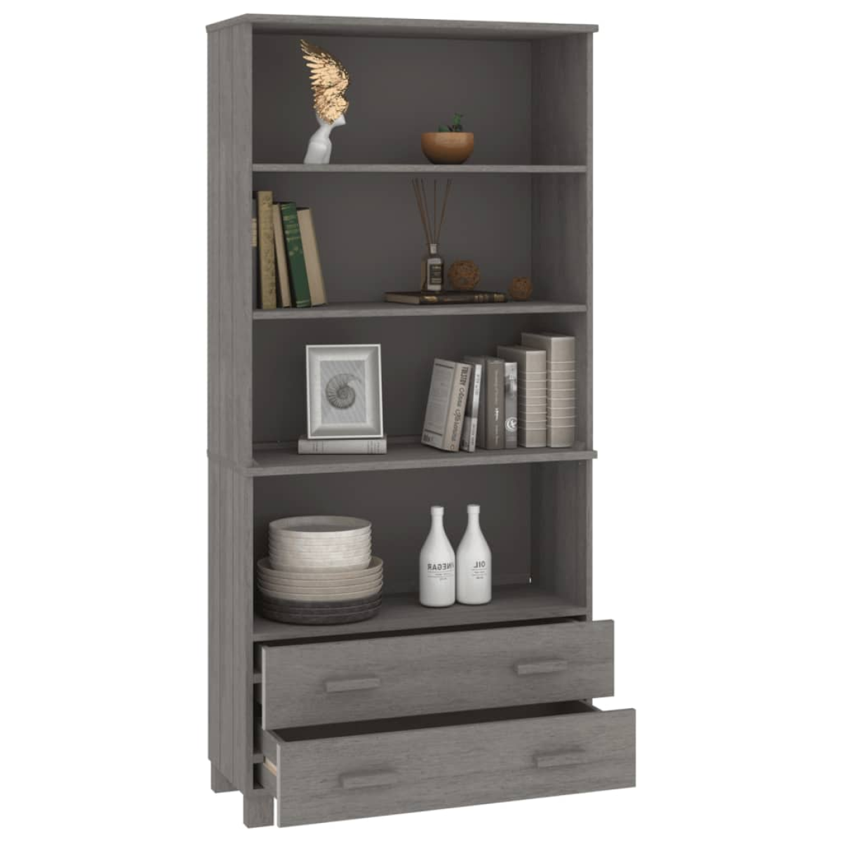 Introduce an air of unique charm to your existing interior with this wooden highboard! Premium material: Solid pine wood is a beautiful natural material. Treat the surface with oil, wax, lacquer, or a glazing finish for a stronger surface and easy cleaning. Pine wood has a straight grain, and the knots give the material its signature, rustic look.Sturdy and stable frame: The wooden frame of the sideboard ensures sturdiness and stability.Ample storage space: The side cabinet has stable open shelves and smooth sliding drawers, which can meet your various storage needs. The ample storage space makes it easy to keep things organised. Warning:In order to prevent overturning, this product must be used with the wall attachment device provided.