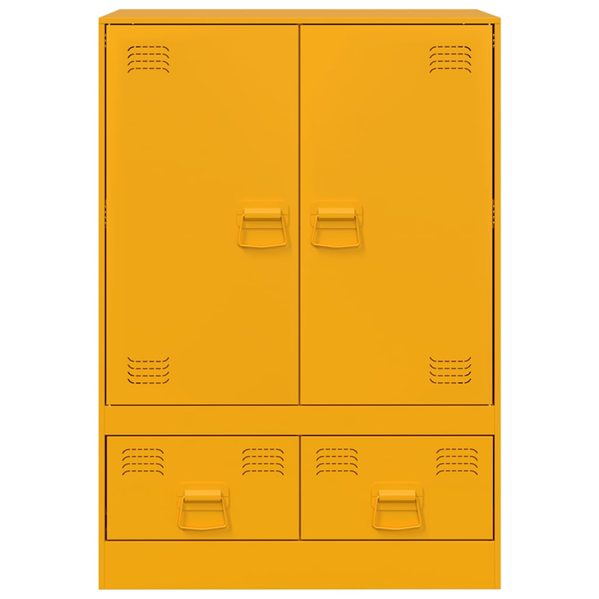 Are you hunting for a stylish highboard? This highboard adds an elegant charm to your existing interior! Stable material: The sideboard's frame is made of cold-rolled steel. Cold-rolled steel is a kind of low-carbon steel produced by a "cold rolling" method and processed at near normal room temperatures. Cold-rolled steel has a smoother surface, greater strength, and higher precision.Ample storage space: This sideboard offers handy storage space for keeping your magazines, books, remote controls and other small items well-organised and within reach.Easy to maintain: The cabinet is easy to clean with a damp cloth and requires less maintenance.Practical handle: The sideboard comes with 4 handles that make it easy to open and close the cabinet while also adding to extra beauty. Warning:To prevent it from tipping over, this product must be used with the wall attachment device (not provided).