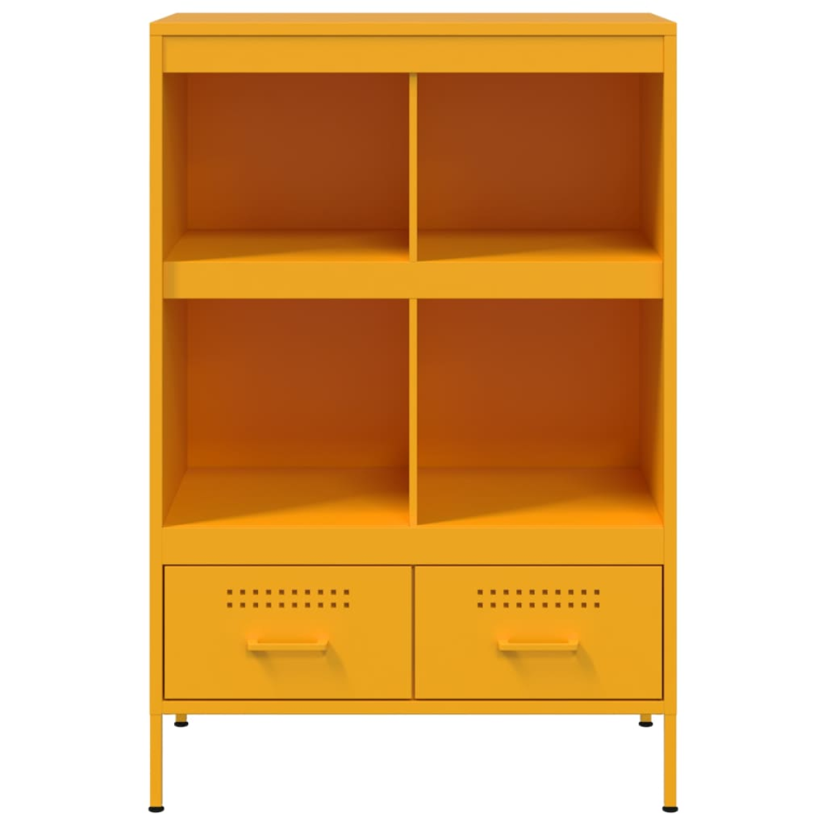 This sturdy highboard with industrial style makes a timeless and modern addition to your living room or bedroom. Stable material: The sideboard's frame is made of cold-rolled steel. Cold-rolled steel is a kind of low-carbon steel produced by a "cold rolling" method and processed at near normal room temperatures. Cold-rolled steel has a smoother surface, greater strength, and higher precision.Ample storage space: This cabinet provides ample storage space for keeping your magazines, books, DVDs, remote control and other small items well-organised and within reach.Adjustable screw feet: This cupboard is equipped with four adjustable screw feet to compensate for uneven floors, ensuring stability and balance.Easy to clean: The metal cabinet is easy to clean with a damp cloth and requires less maintenance. Warning:To prevent it from tipping over, this product must be used with the provided wall attachment device.