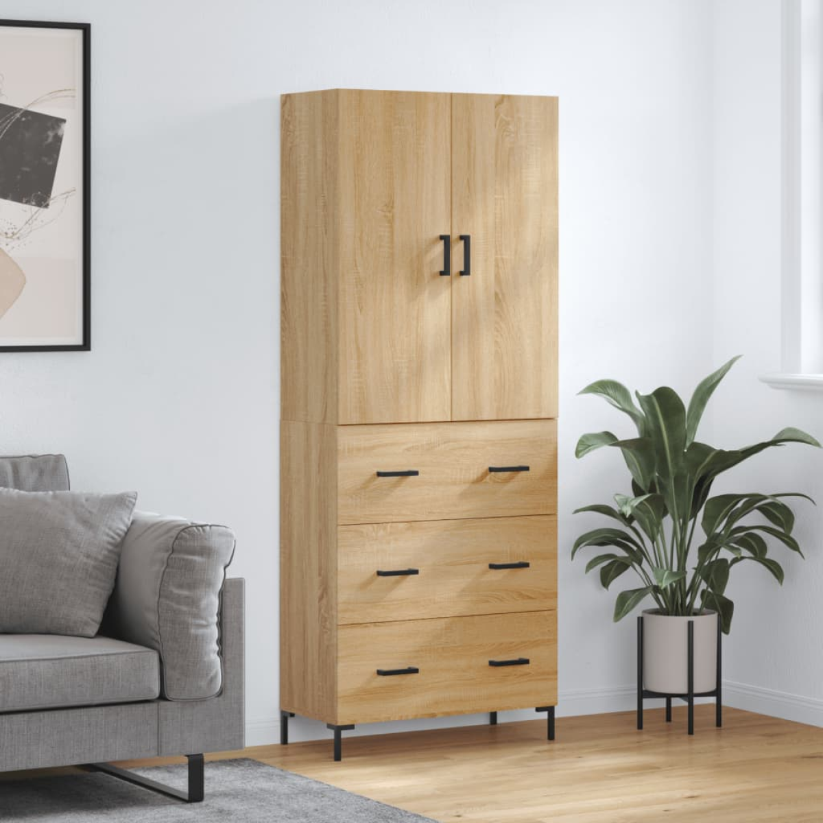 Are you hunting for a stylish highboard? This highboard adds an elegant charm to your existing interior! Durable material: The engineered wood is of exceptional quality with a smooth surface and features strength, stability and resistance to moisture.Ample storage space: The cabinet provides ample storage space for keeping your various daily essentials well-organised and within easy reach.Practical door: Keep your space clutter-free by hiding small essentials behind the doors of the storage cabinet.Metal feet: The metal feet add a calm style to your interior while ensuring stability. Warning:To prevent it being overturned, this product must be used with the provided wall attachment device. Good to know:Screws and plugs for inside the wall are not included. We advise to find and use screws and plugs suitable specifically for your walls. If you're not sure, you can consult with a professional. Please read and follow each step of the instructions.