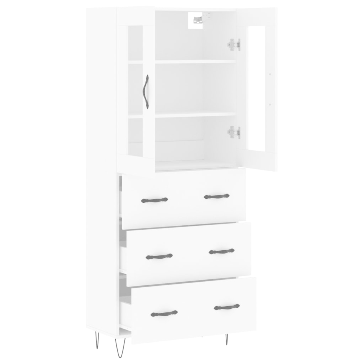 Are you hunting for a stylish highboard? This highboard adds an elegant charm to your existing interior! Durable material: The engineered wood is of exceptional quality with a smooth surface and features strength, stability and resistance to moisture.Ample storage space: The cabinet provides ample storage space for keeping your various daily essentials well-organised and within easy reach.Metal feet: The metal feet add a calm style to your interior while ensuring stability. Warning:To prevent it being overturned, this product must be used with the provided wall attachment device. Good to know:Screws and plugs for inside the wall are not included. We advise to find and use screws and plugs suitable specifically for your walls. If you're not sure, you can consult with a professional. Please read and follow each step of the instructions.