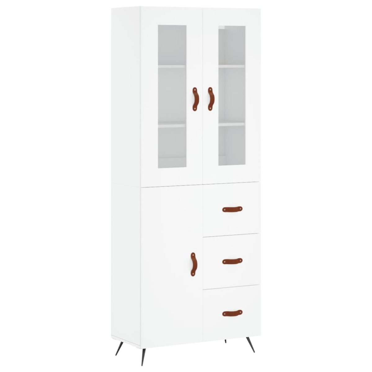 Are you hunting for a stylish highboard? This highboard adds an elegant charm to your existing interior! Durable material: The engineered wood is of exceptional quality with a smooth surface and features strength, stability and resistance to moisture.Ample storage space: The cabinet provides ample storage space for keeping your various daily essentials well-organised and within easy reach.Metal feet: The metal feet add a calm style to your interior while ensuring stability. Warning:To prevent it being overturned, this product must be used with the provided wall attachment device. Good to know:Screws and plugs for inside the wall are not included. We advise to find and use screws and plugs suitable specifically for your walls. If you're not sure, you can consult with a professional. Please read and follow each step of the instructions.