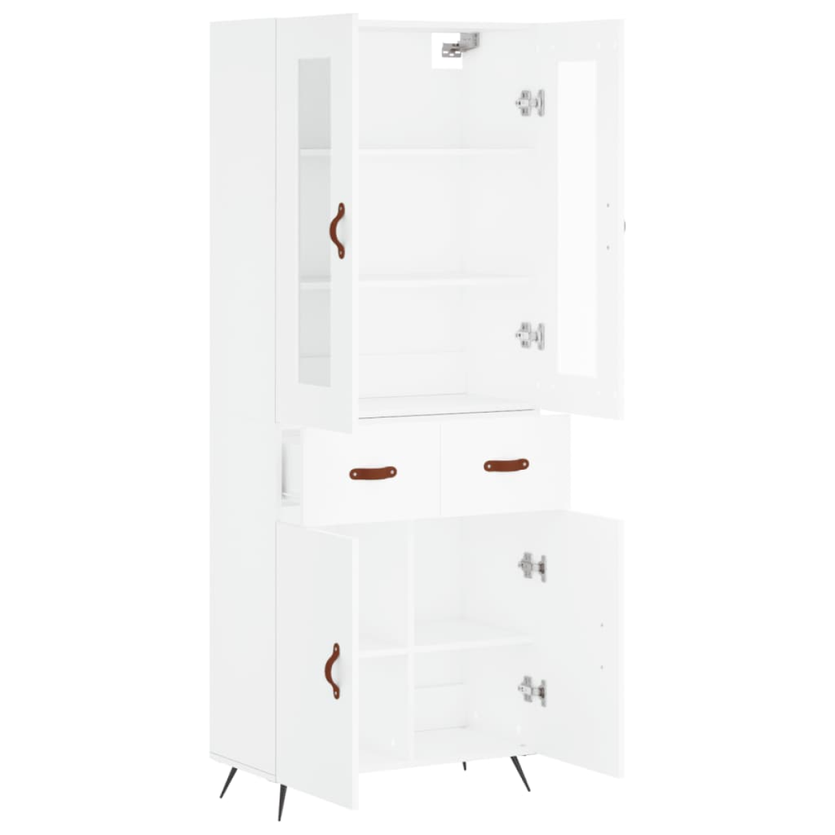 Are you hunting for a stylish highboard? This highboard adds an elegant charm to your existing interior! Durable material: The engineered wood is of exceptional quality with a smooth surface and features strength, stability and resistance to moisture.Ample storage space: The cabinet provides ample storage space for keeping your various daily essentials well-organised and within easy reach.Metal feet: The metal feet add a calm style to your interior while ensuring stability. Warning:To prevent it being overturned, this product must be used with the provided wall attachment device. Good to know:Screws and plugs for inside the wall are not included. We advise to find and use screws and plugs suitable specifically for your walls. If you're not sure, you can consult with a professional. Please read and follow each step of the instructions.