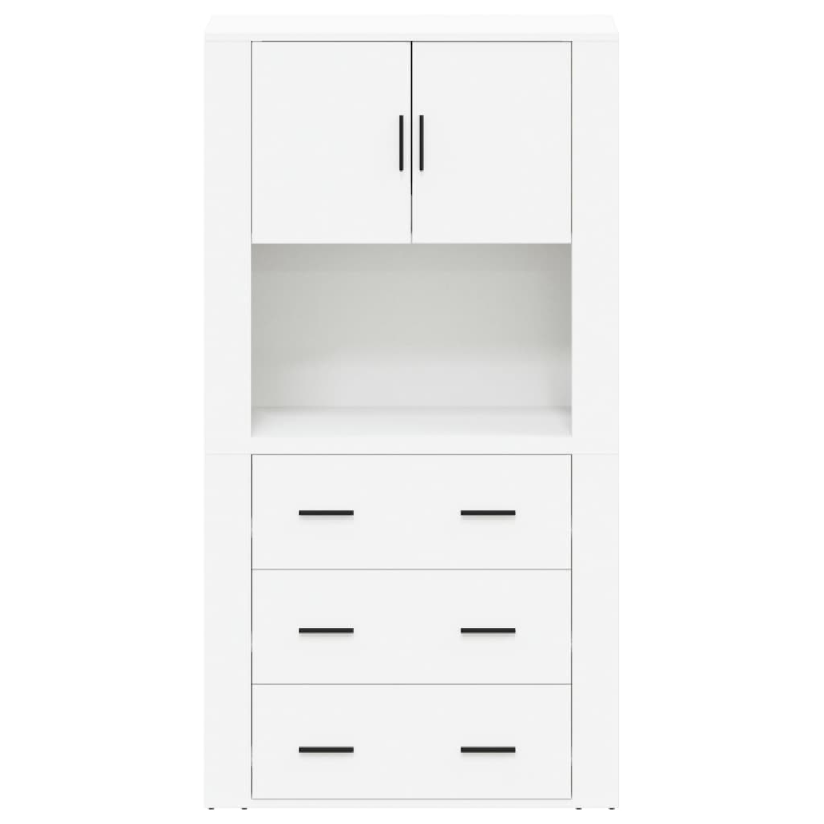 Are you hunting for a stylish highboard? This highboard adds a unique charm to your existing interior! Durable material: The engineered wood is of exceptional quality with a smooth surface and features strength, stability and resistance to moisture.Ample storage space: The sideboard offers ample storage space for keeping your various daily essentials well organised and within easy reach.Wall-mounted function: The storage cabinet can be wall-mounted on the top of the sideboard to create a highboard, which saves floor space. That way, you can maximise your living space and keep the area clean and tidy. Good to know:To make assembly as easy as possible, each product is delivered with a manual.Screws and plugs for inside the wall are not included. We advise to find and use screws and plugs suitable specifically for your walls. If you're not sure, you can consult with a professional. Please read and follow each step of the instructions. Warning:To prevent it being overturned, this product must be used with the provided wall attachment device.