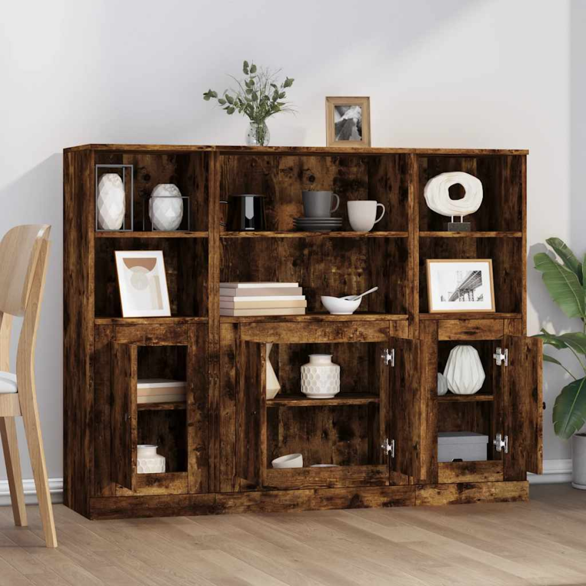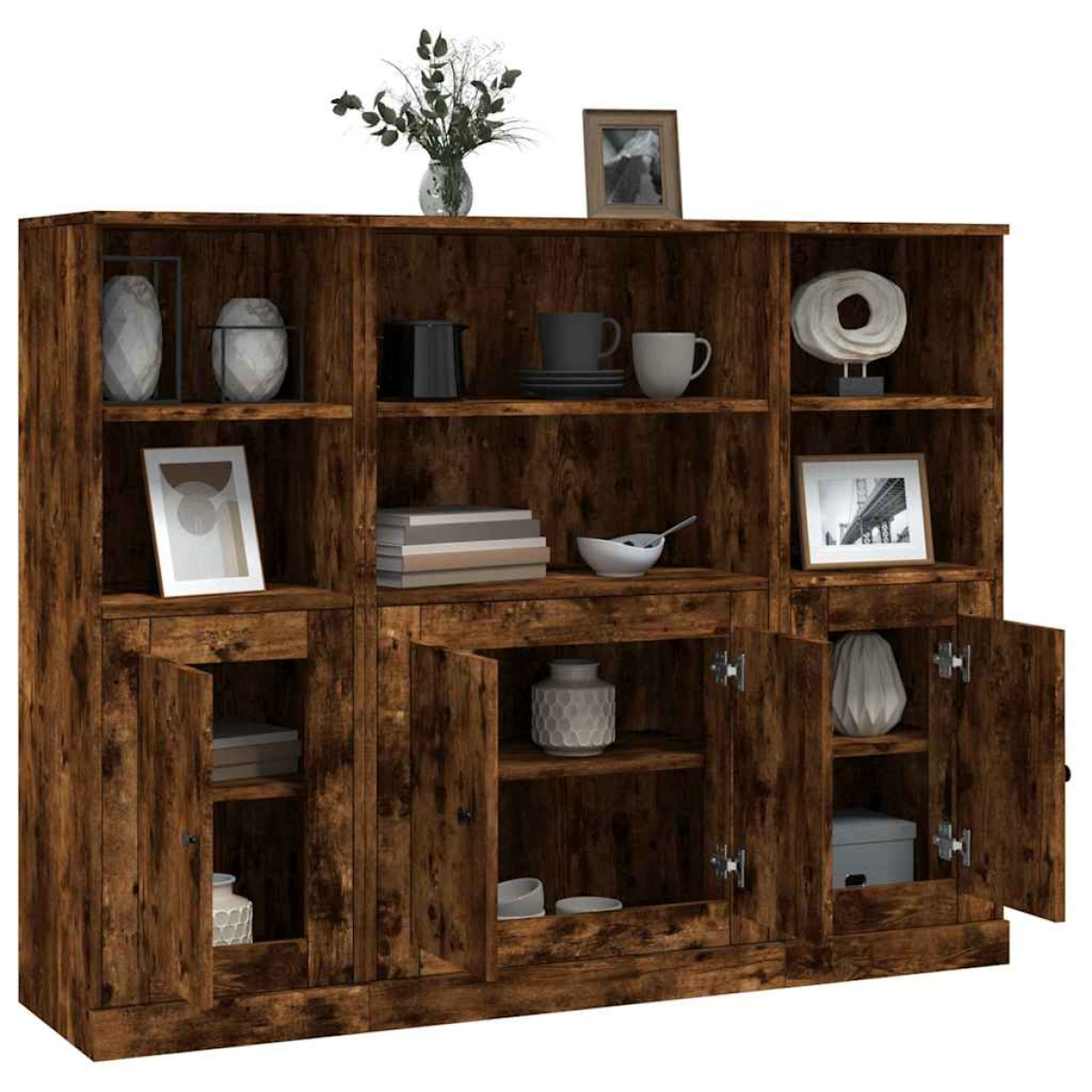 vidaXL Highboards 3 pcs Smoked Oak Engineered Wood