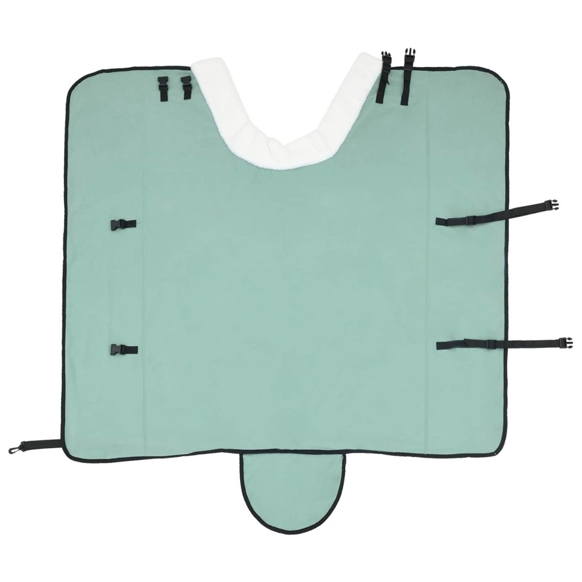 This horse blanket is thoughtfully designed to provide warmth and protection for horses in colder weather. With its modern style characterized by clean lines and minimal ornamentation, it perfectly combines functionality and aesthetic appeal. Whether braving a chilly winter day or resting after a long day's work, your horse will stay cozy and comfortable in this fleece blanket. The practical design ensures it can be used for a variety of outdoor settings, providing both warmth and style in equal measure. Quality Polar Fleece: Made from premium polar fleece, this horse blanket provides exceptional warmth and softness. The fleece is known for its lightweight nature, allowing the horse to move freely without any restrictive feel. Offering superior insulation, it ensures that your horse stays warm even during the coldest winter days, making it a reliable choice for outdoor use. Functional Buckles: Equipped with adjustable buckles, this blanket allows for a tailored fit that adapts to individual horses. By ensuring a snug fit, the buckles contribute to comfort and safety, minimizing the risk of the blanket shifting while the horse is in motion. This feature offers peace of mind when your horse is outdoors, ensuring it stays protected and warm. Versatile Cover Design: Featuring a removable cover, the blanket ensures easy maintenance. The cover can be effortlessly detached and machine washed at 30 degrees, which keeps it fresh and clean without any hassle. This means less time spent worrying about cleanliness and more time with your horse. Weather-Defensive Make: With a windproof design, this blanket keeps harsh weather at bay. Its structure resists blustery conditions, ensuring your horse remains comfortable and sheltered. This durability ensures the blanket performs well throughout the winter season, making it a trustworthy companion. Practical Storage Feature: The collapsible design makes it ideal for storage when not in use. Quickly folded down, it becomes space-efficient and easy to store. This feature accommodates tight spaces and ensures that the blanket is always ready for the next cold spell.